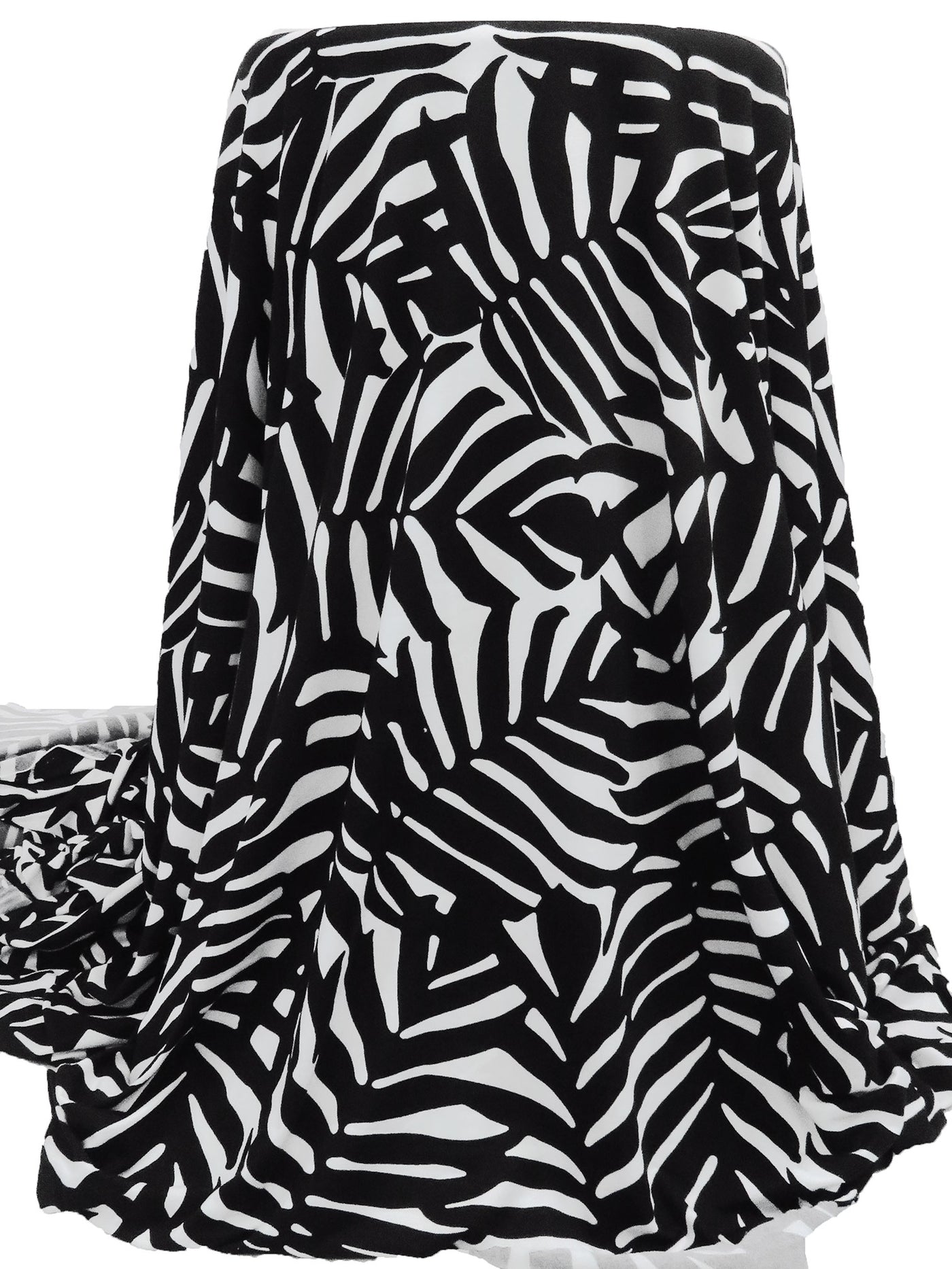 Black/White Polyester/Lycra Leaf Silhouette Print Double Brushed Knit - NY Designer - 64W
