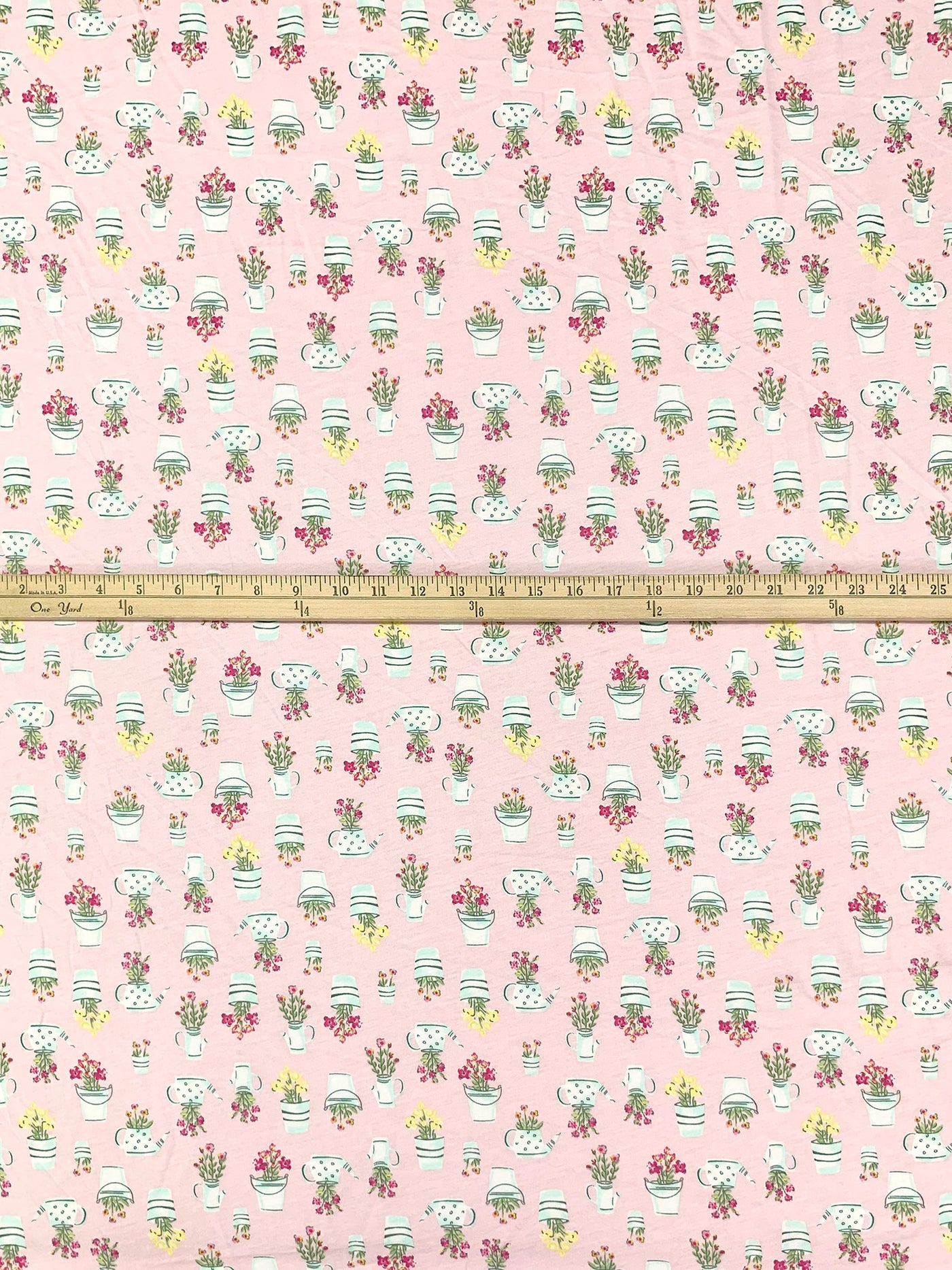 Champagne Pink/White/Lemon/Multi Cotton/Rayon Floral Arrangements Print Jersey Knit - NY Designer - 56W