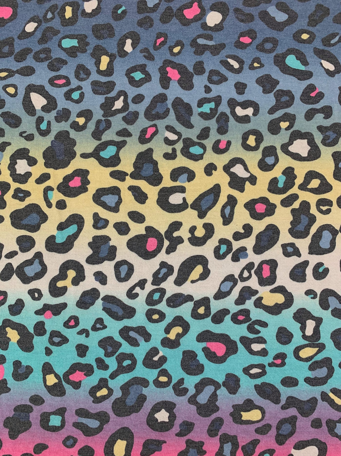 Charm Pink/Pewter Blue/Dark Gray/Multi Polyester/Rayon/Lycra Animal Print French Terry Knit - 60W
