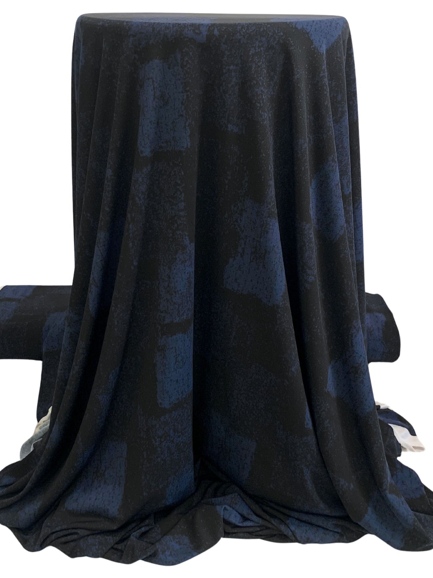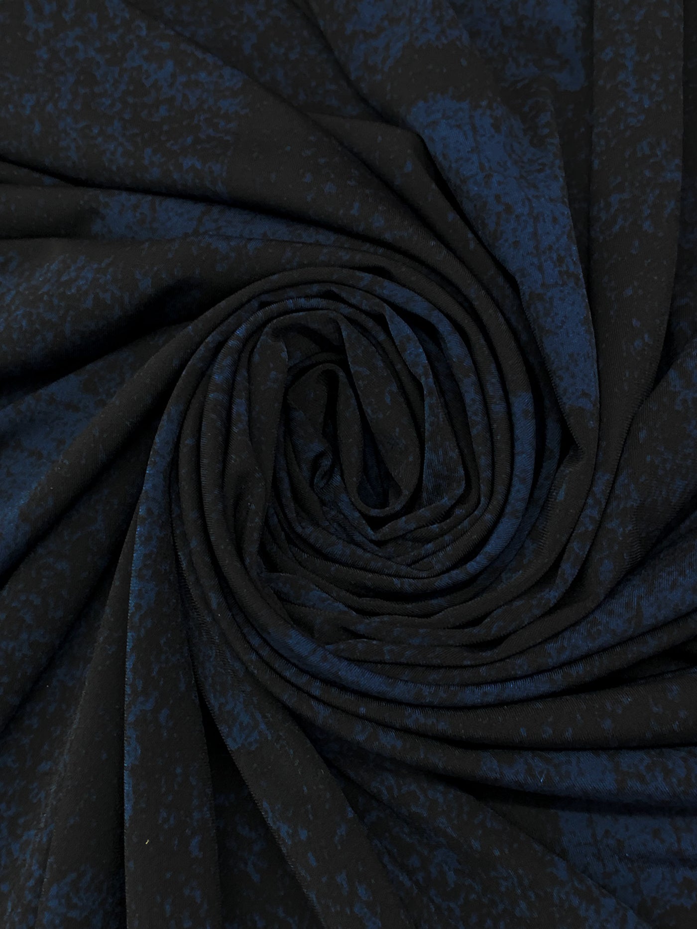 Dark Imperial Blue/Black Polyester/Lycra Abstract Splotch Print ITY Knit 59W