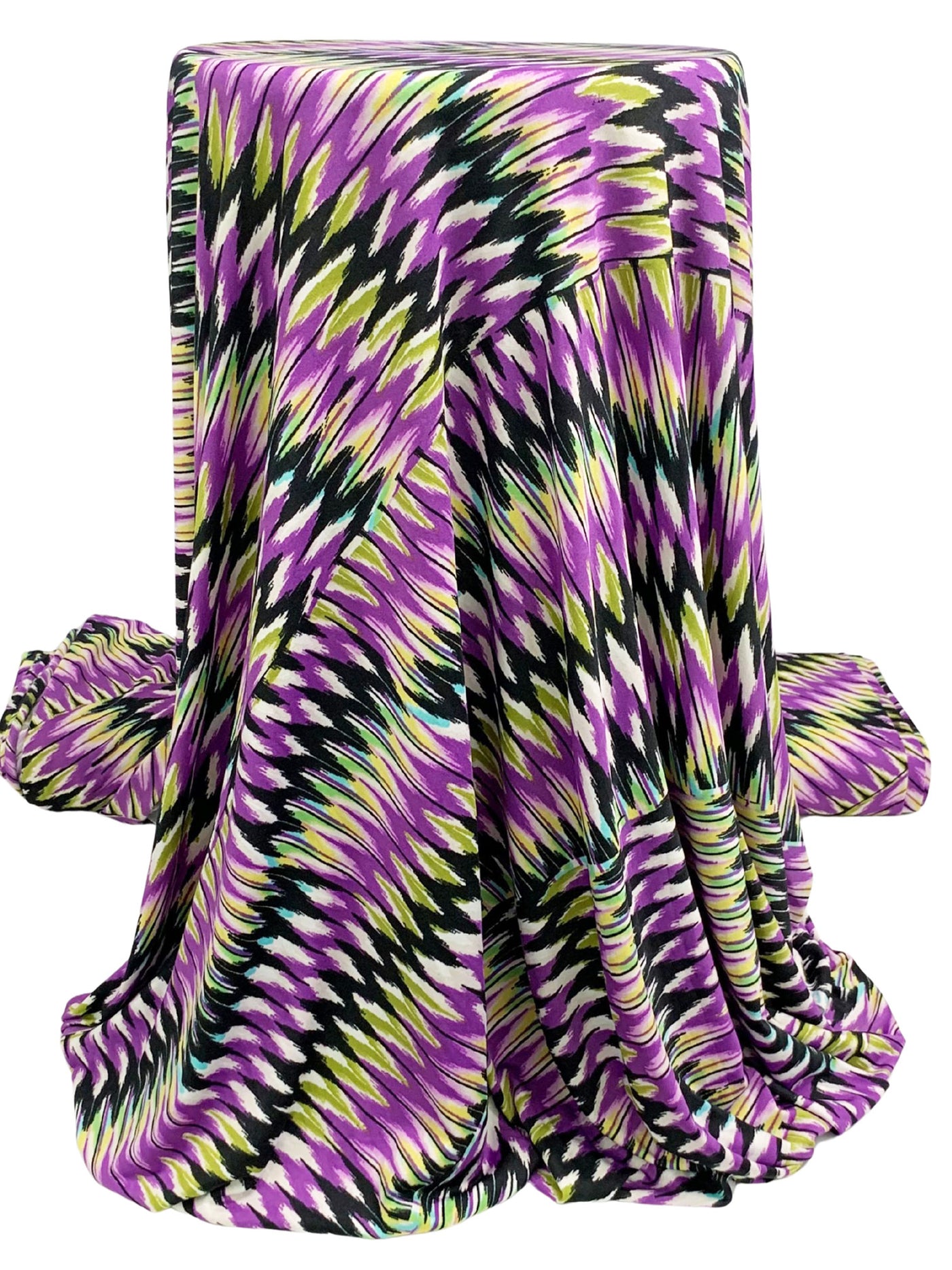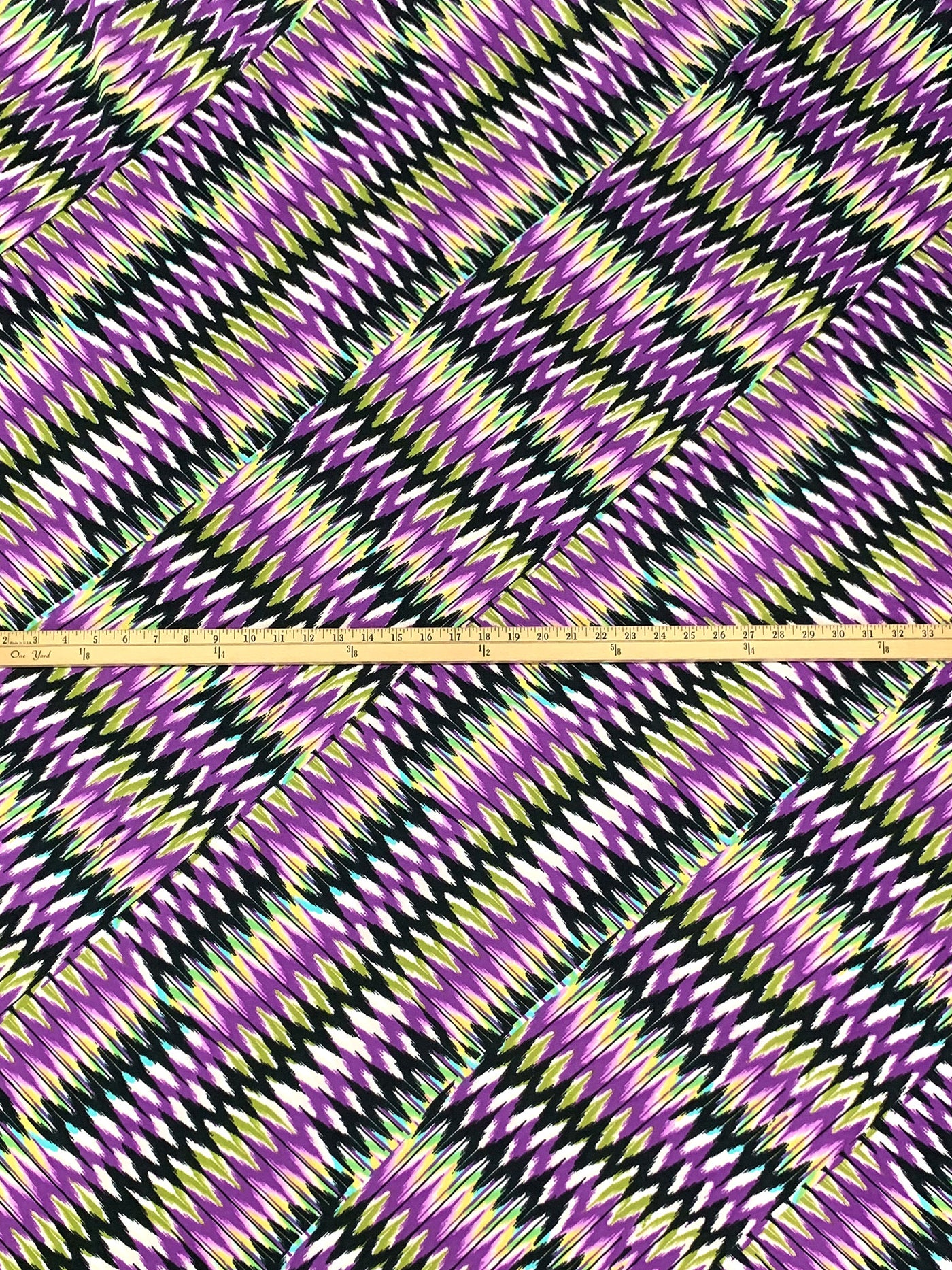 Dark Lavender/Brass/Black/Multi Polyester/Lycra Large Diagonal Ikat Zig-Zag Print DTY Knit 64W