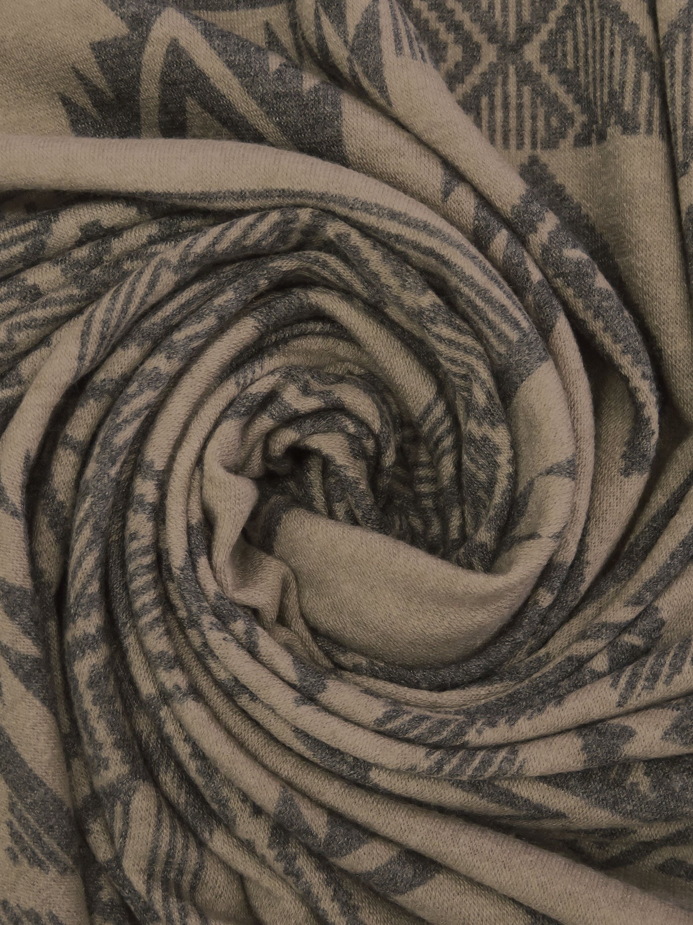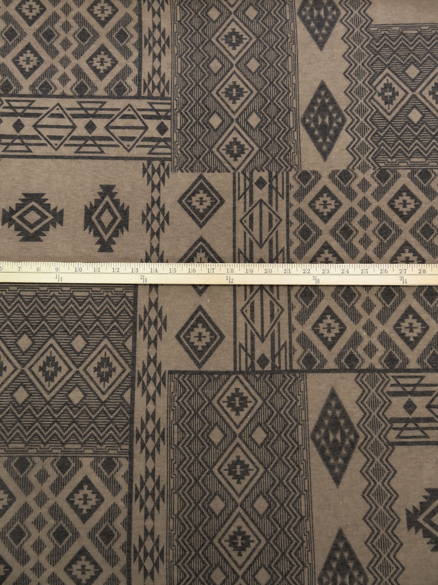 Dark Taupe/Dark Charcoal Gray Polyester/Rayon/Lycra Tribal Patchwork Print French Terry Knit 60W