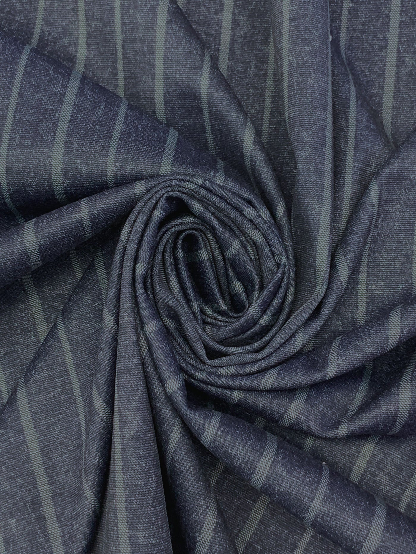 Dusty Navy/Bright Gray Polyester/Rayon/Lycra Vertical Stripe Ponte Knit - Imported From Italy By NY Designer - 60W