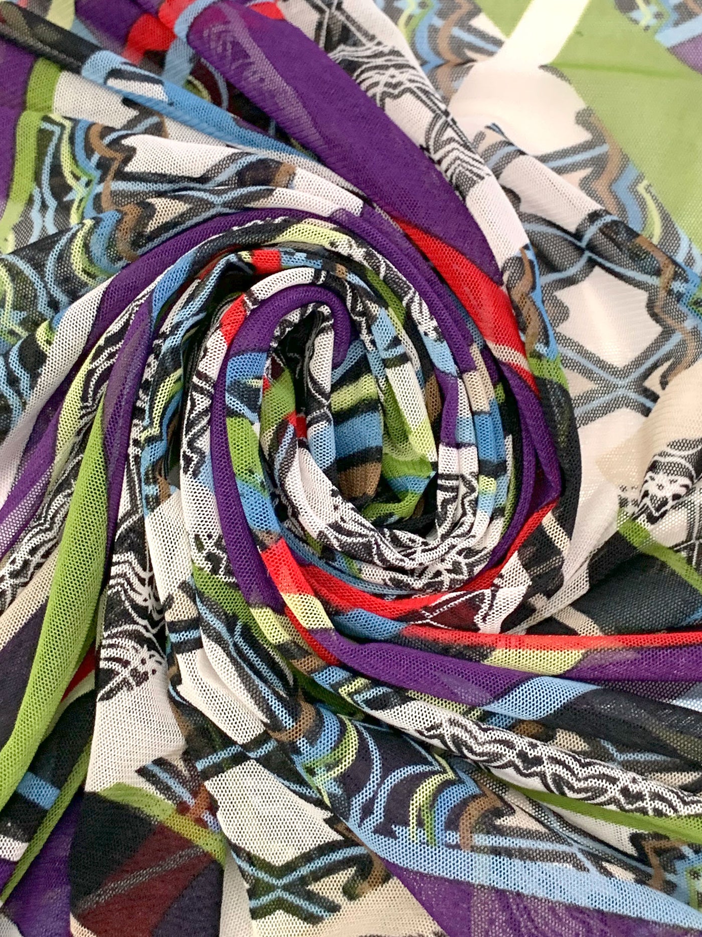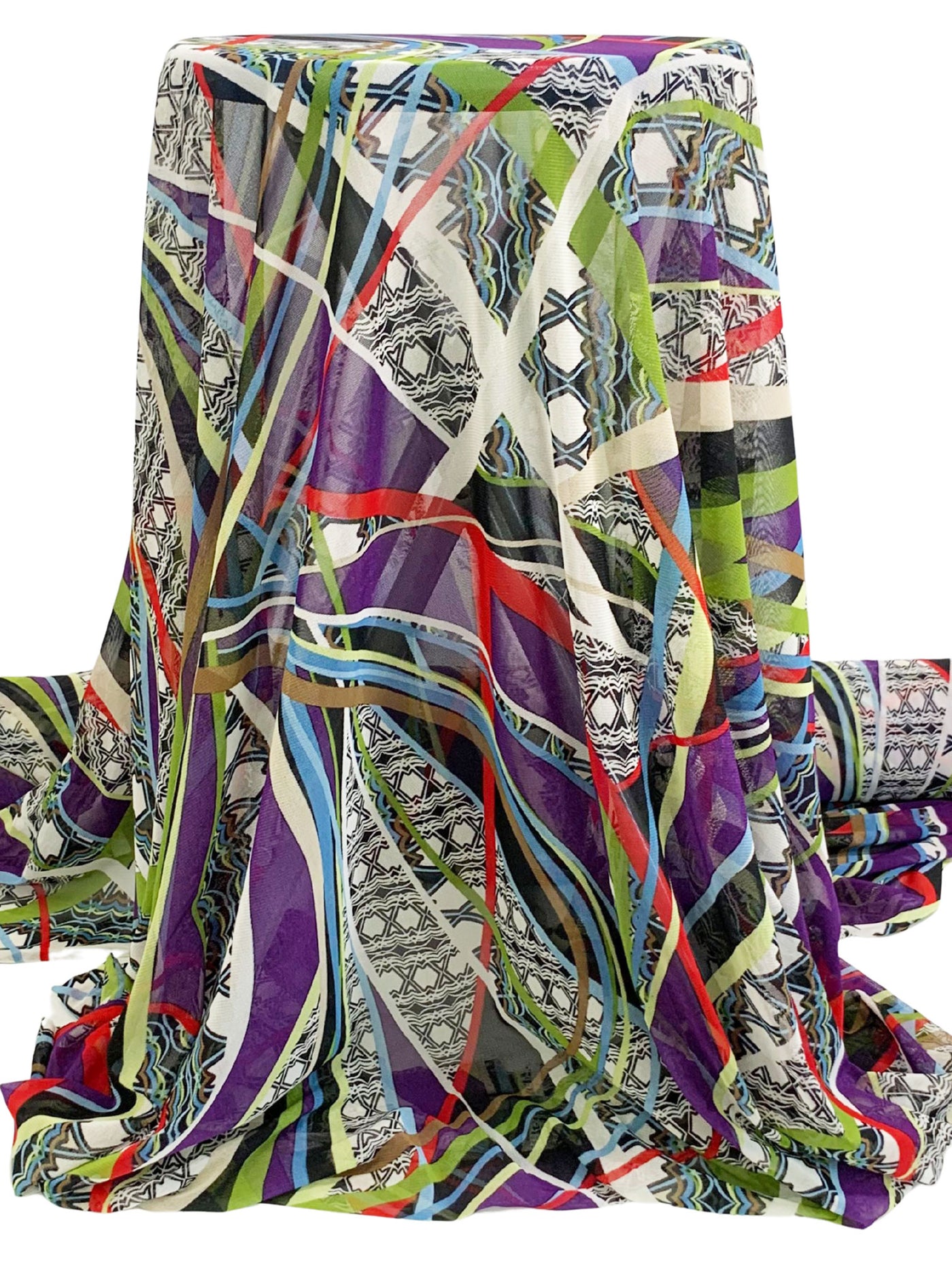 Imperial Purple/Red/Black/Multi Nylon/Lycra Large Abstract Print Mesh Knit - Imported From France - 50W