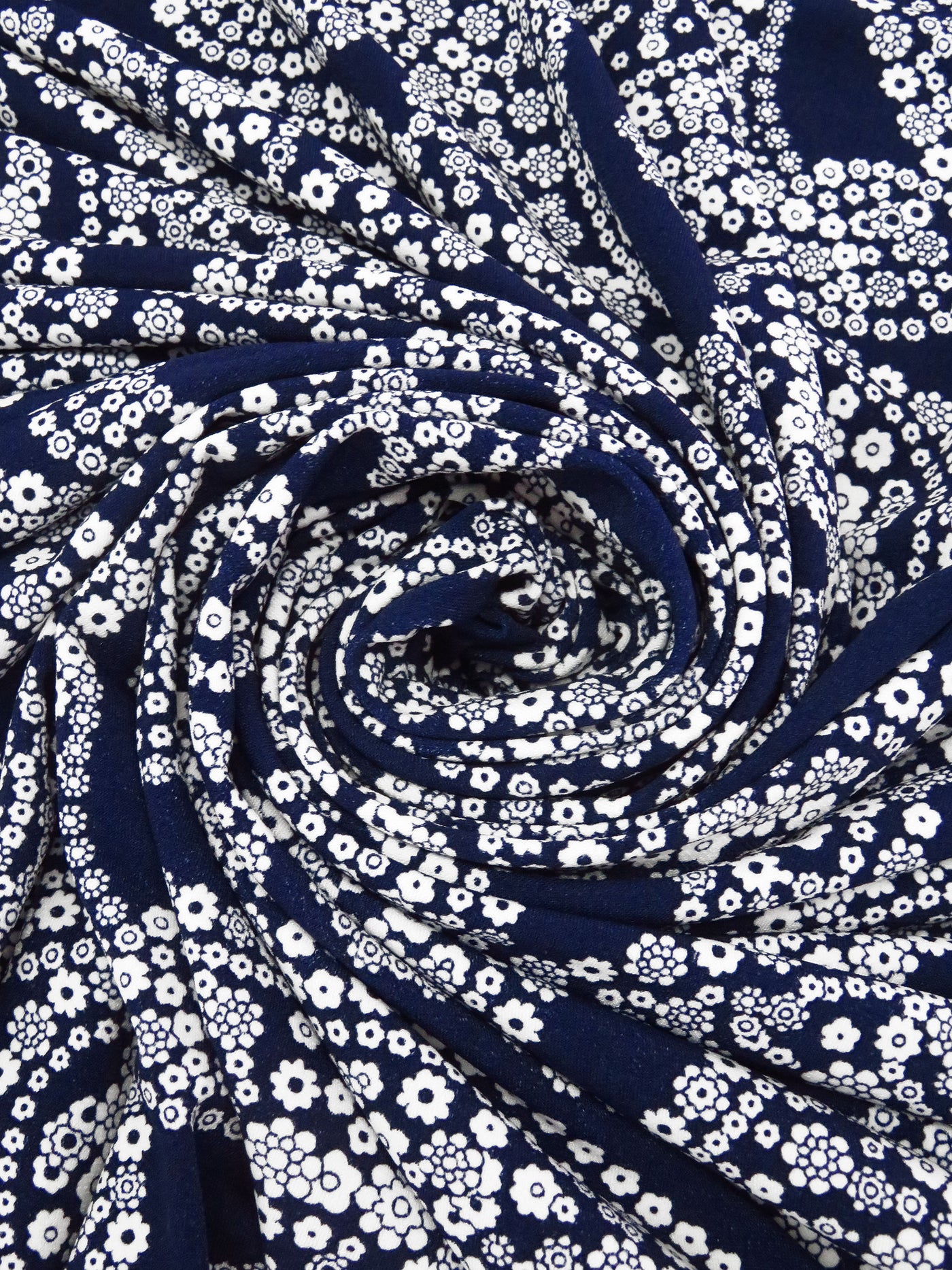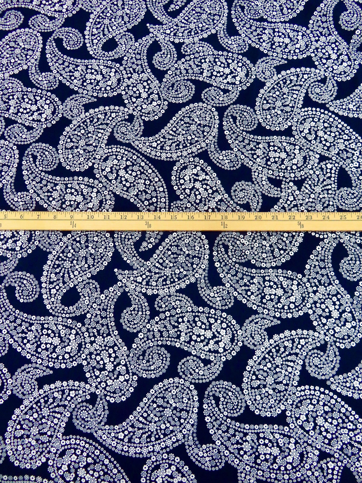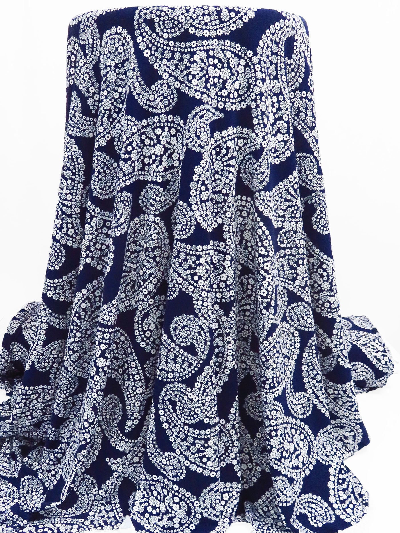 Midnight Navy/White Polyester/Lycra Floral Paisley Print ITY Knit - NY Designer - 58W