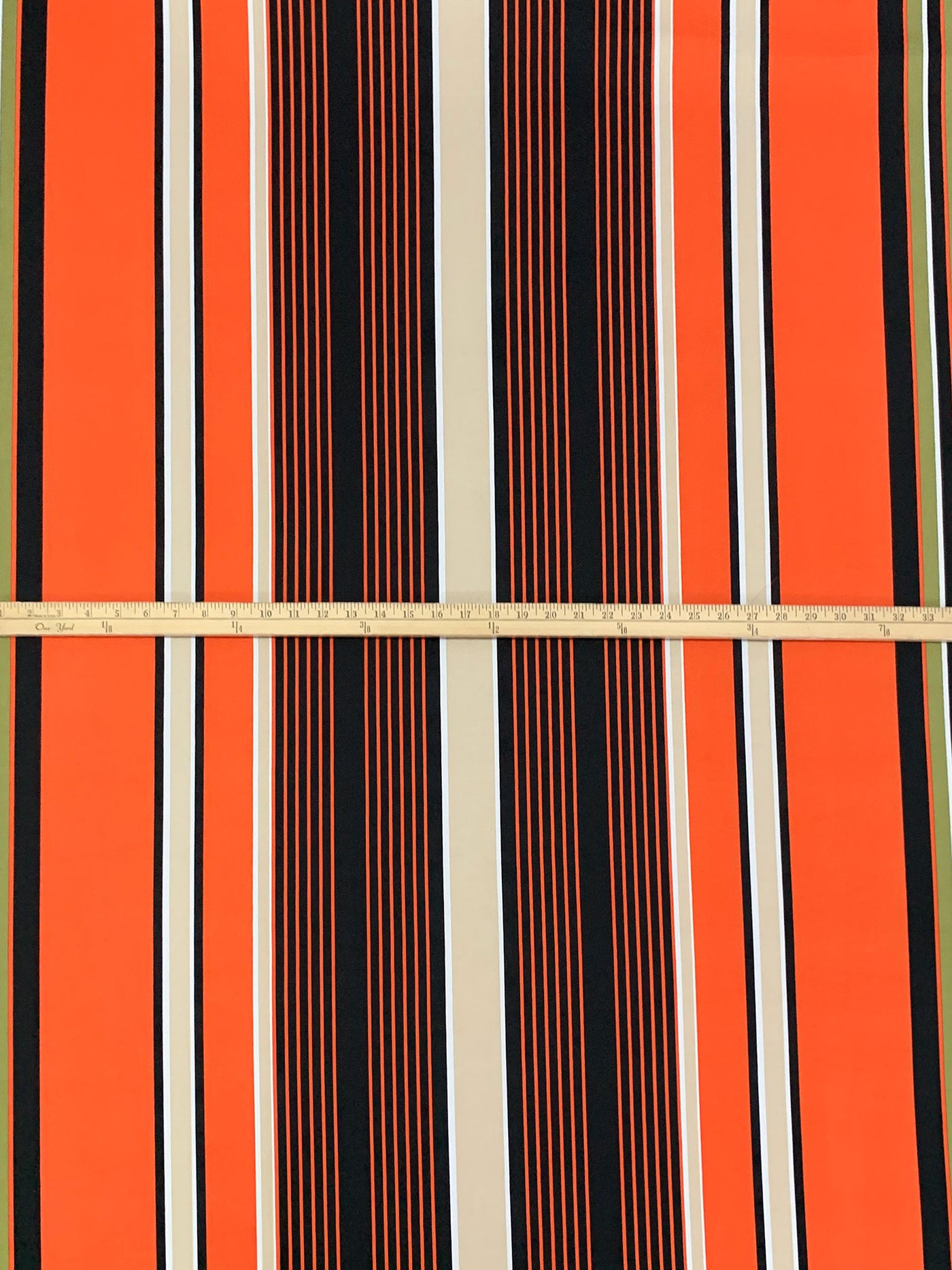 Moss Green/Pumpkin/Black Polyester/Lycra Large Vertical Stripe Print DTY Knit 61W
