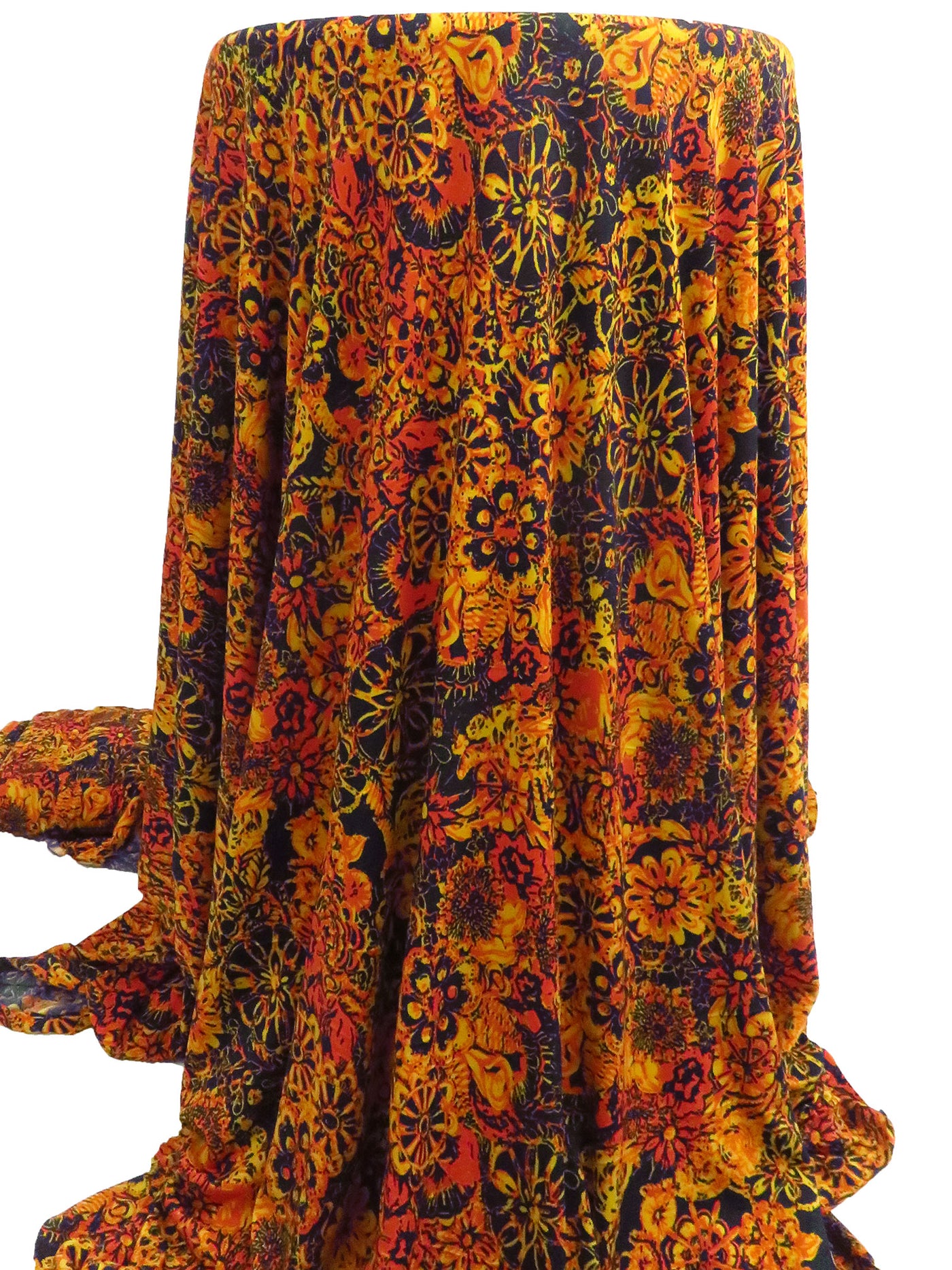 Muted Midnight Navy/Deep Orange/Dark Gold Polyester/Lycra Abstract Floral Print ITY Knit 56W