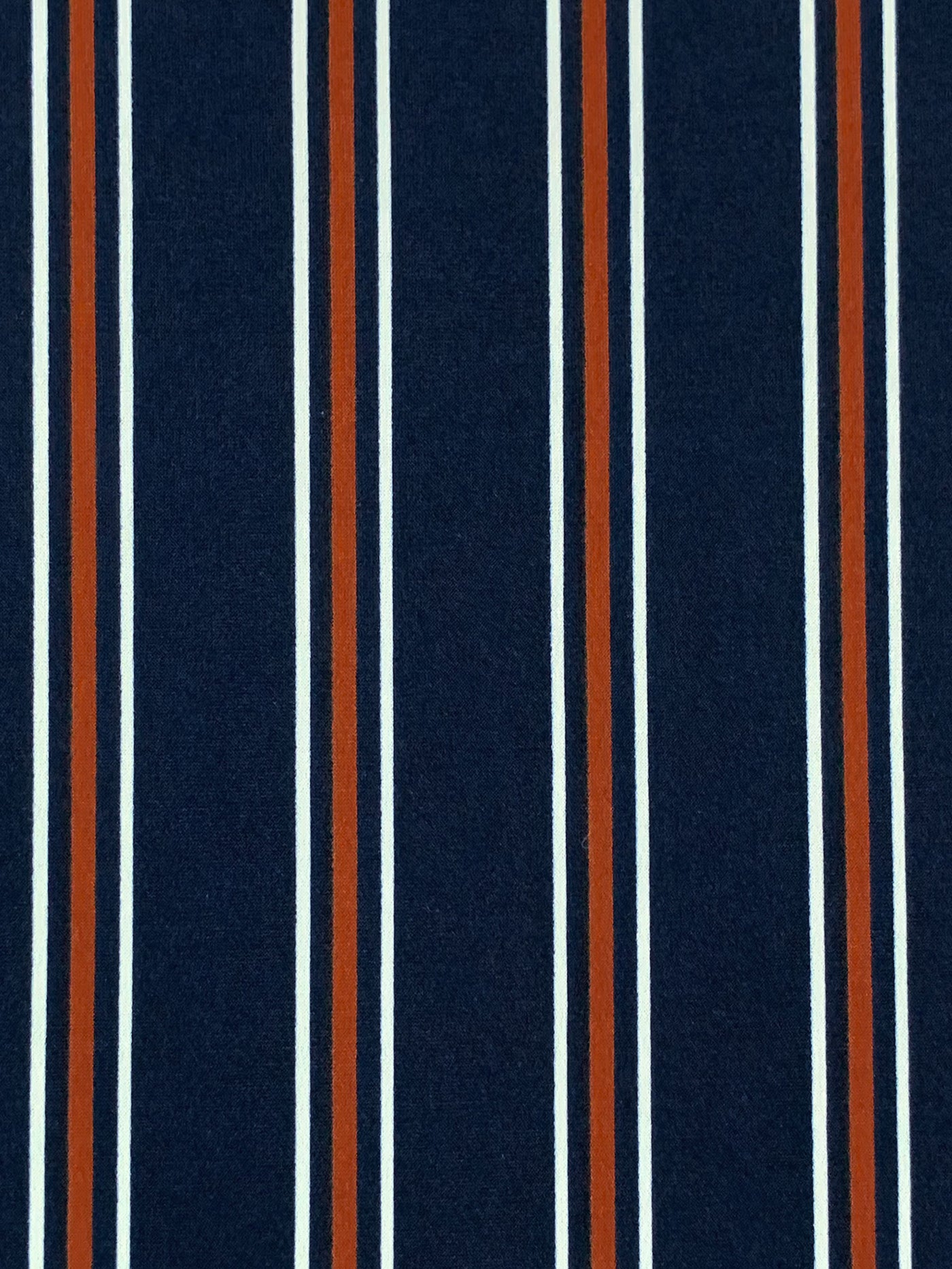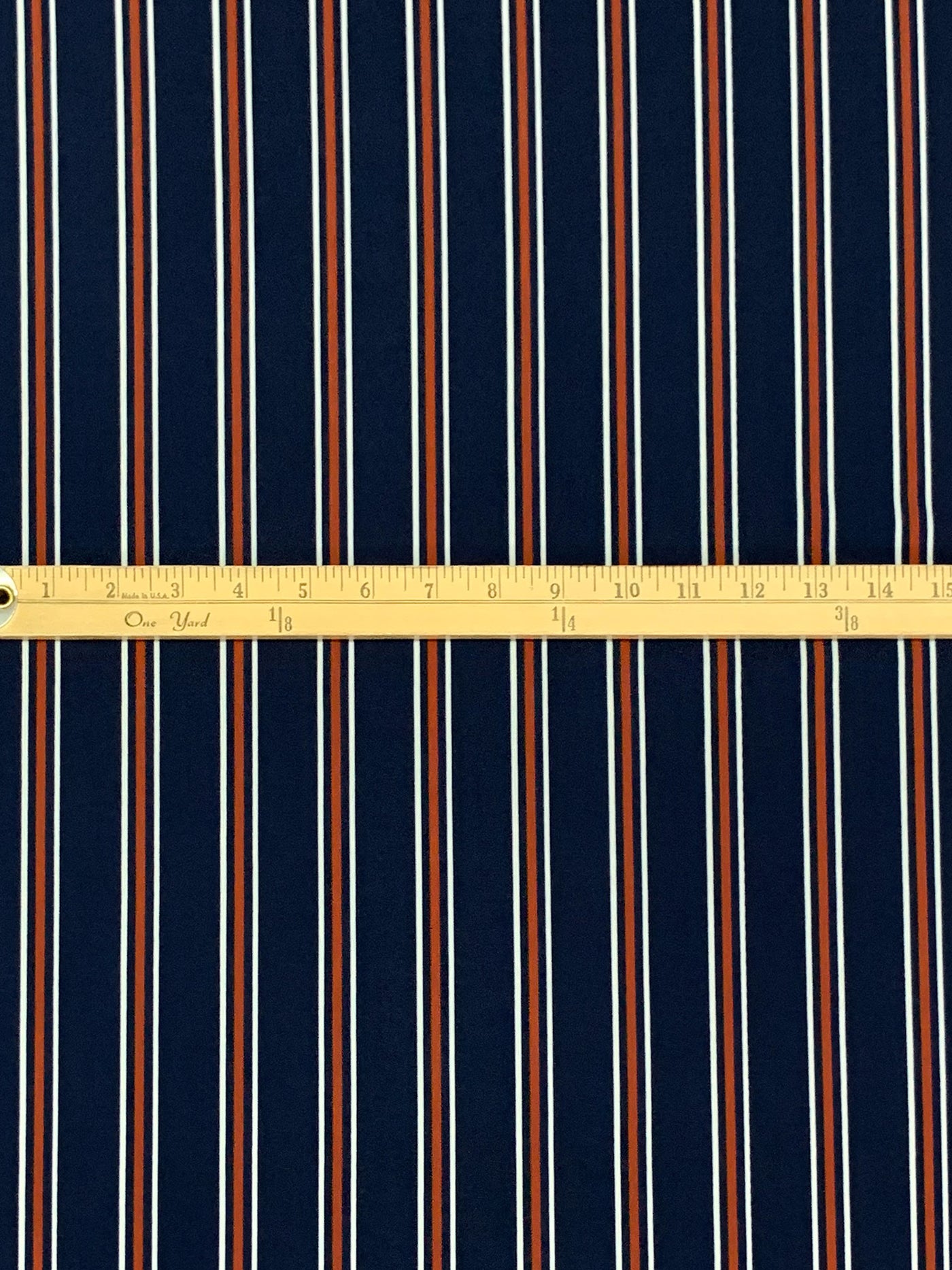 Navy Blue/Copper Rust/White Polyester/Lycra Vertical Stripe Print ITY Knit 60W