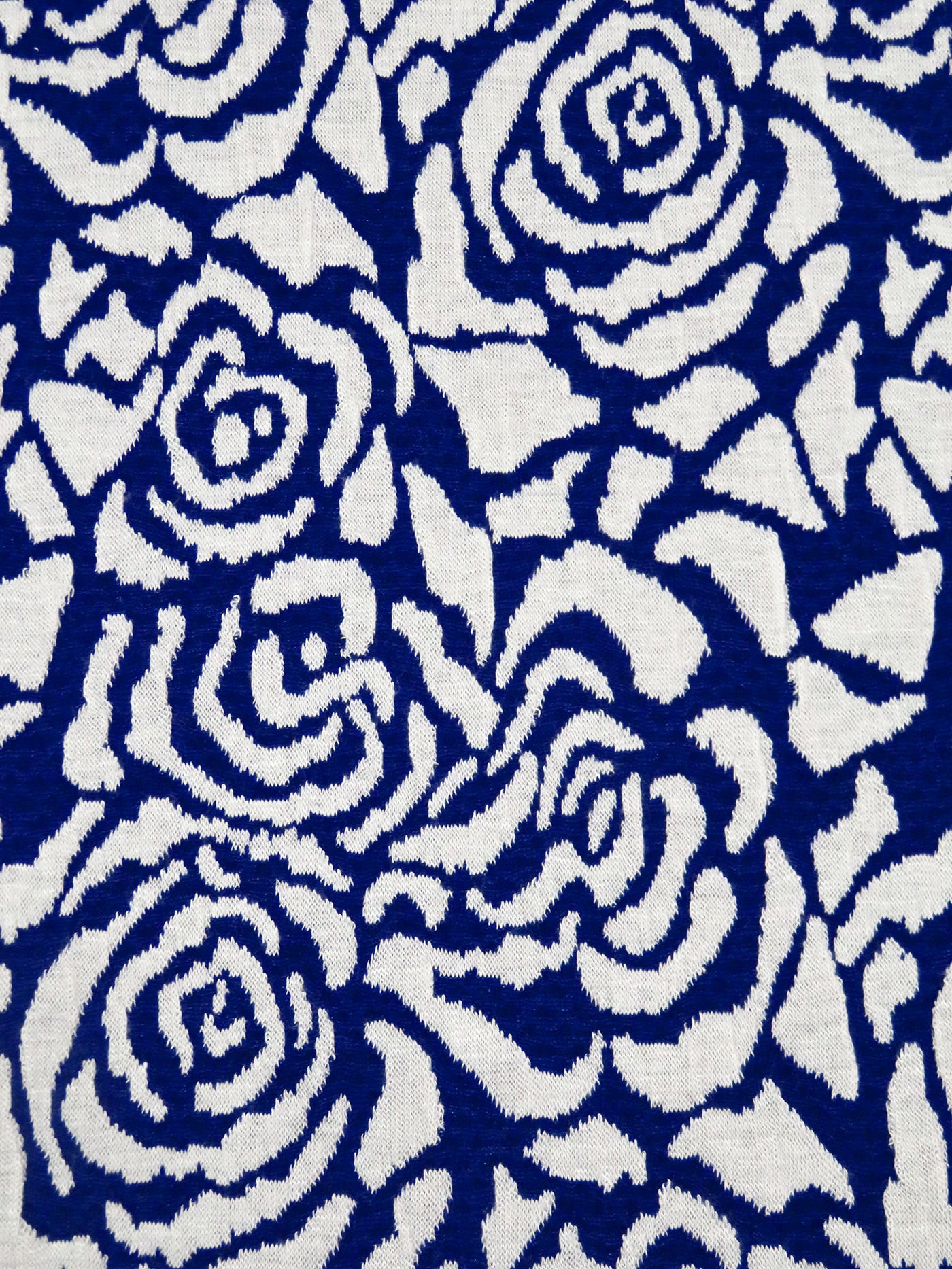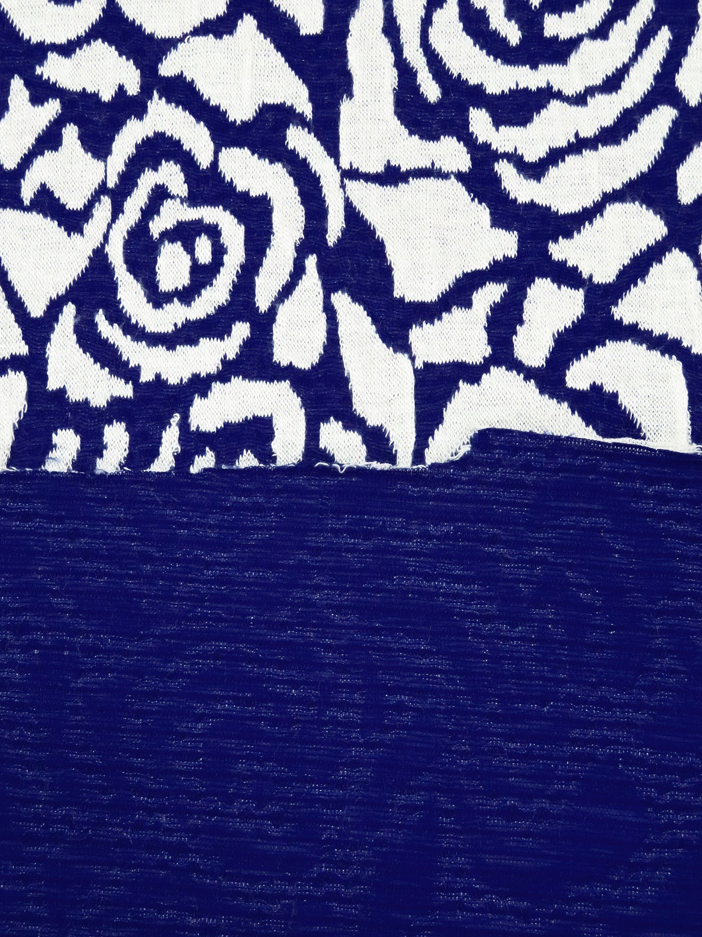 Navy Blue/White Polyester/Rayon Abstract Rose Weave Jacquard Double Knit 60W