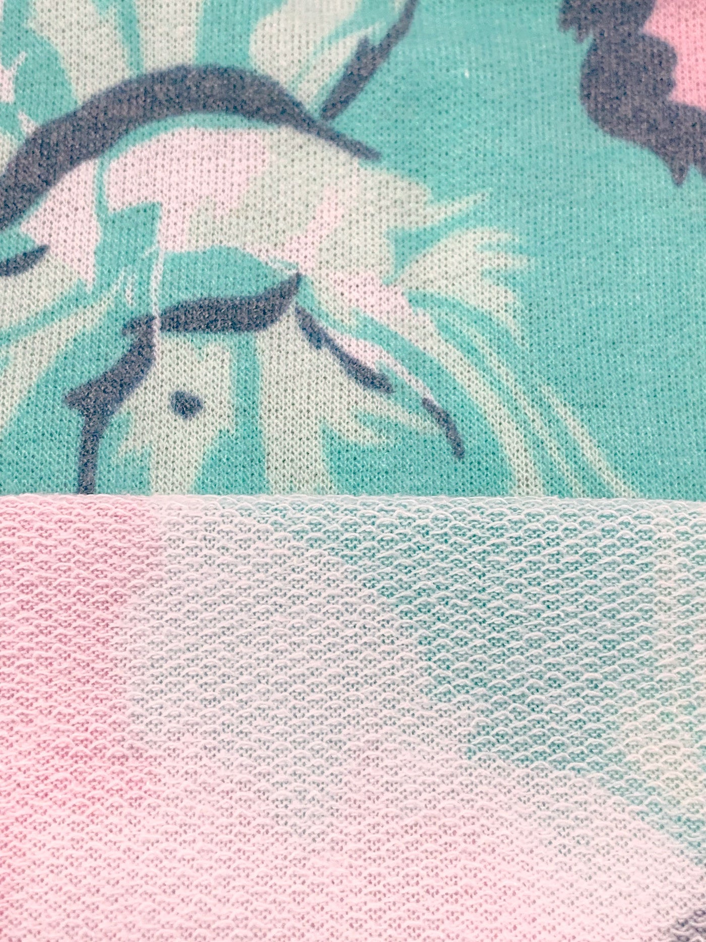 Pale Pink/Sea Green/Off-White/Multi Polyester/Rayon/Lycra Large Floral Print French Terry Knit - 58W