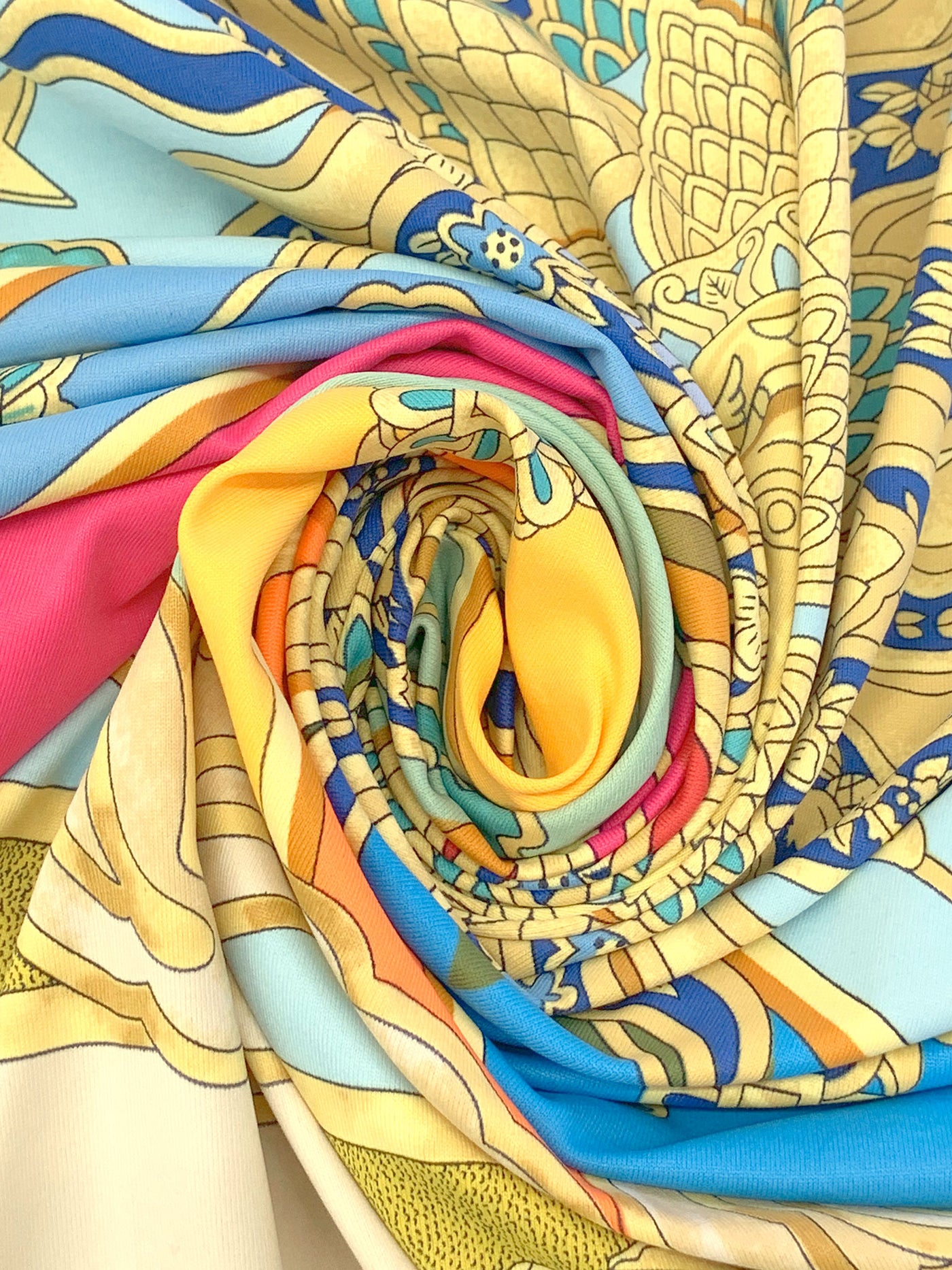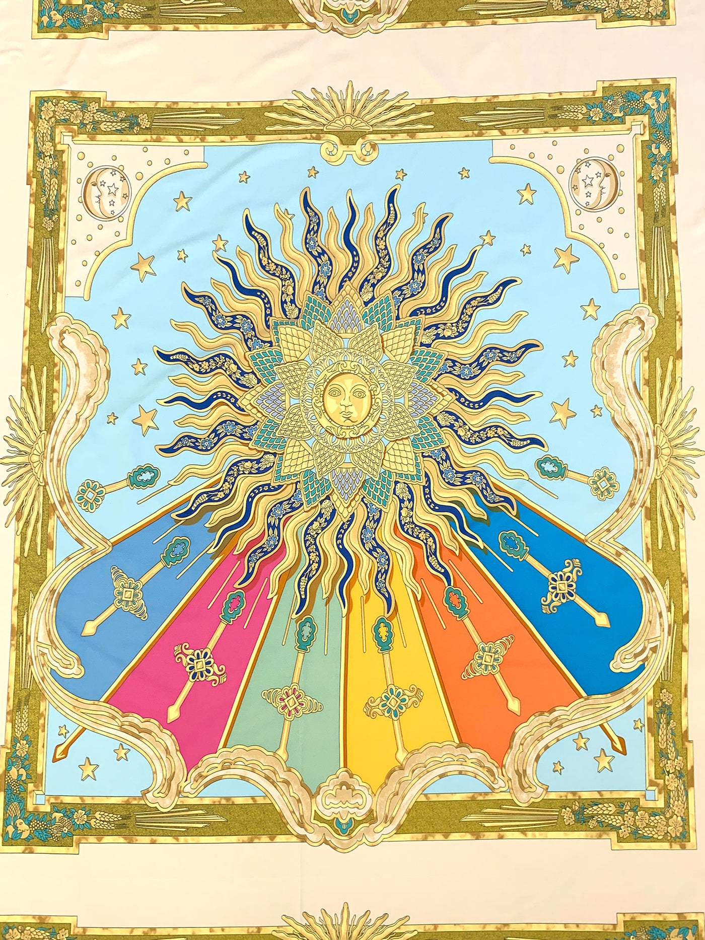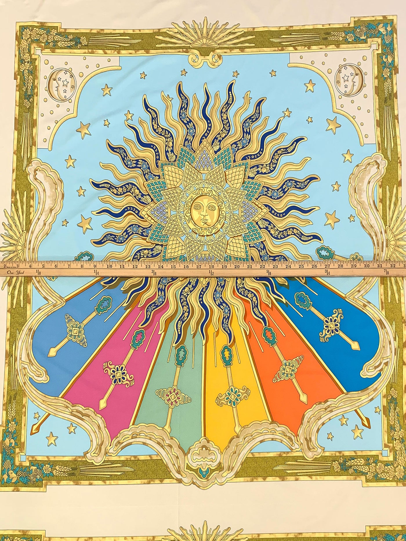 SOLD BY THE PANEL ONLY - Gold/Sapphire/Multi Polyester/Lycra Mystical Sun Frame Print Smooth Jersey Knit - NY Designer - 44W