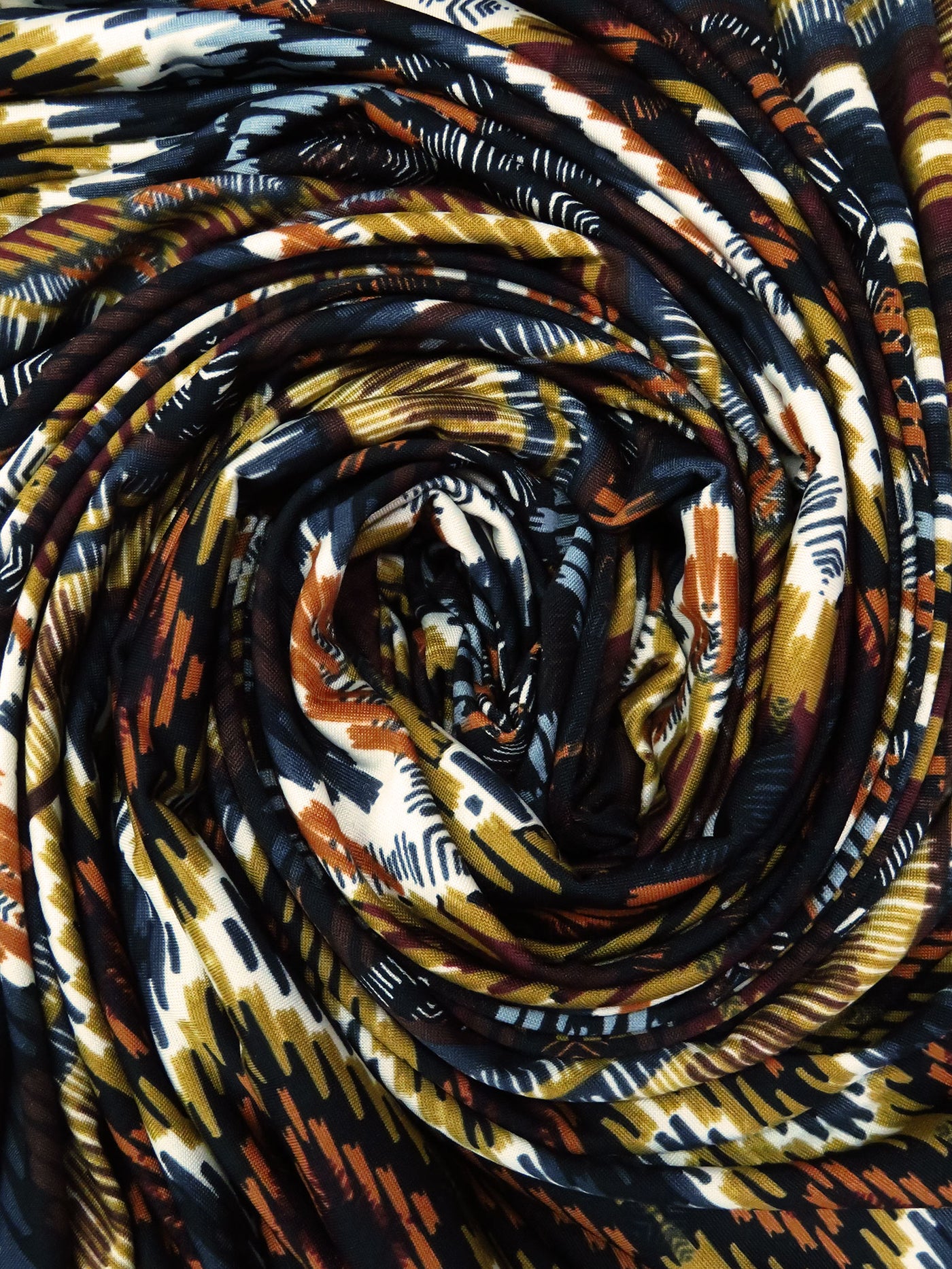 SOLD BY THE PANEL ONLY - Old Moss/Black/Dark Sienna/Multi Polyester/Lycra Zig Zag Framework Print DTY Knit 60W