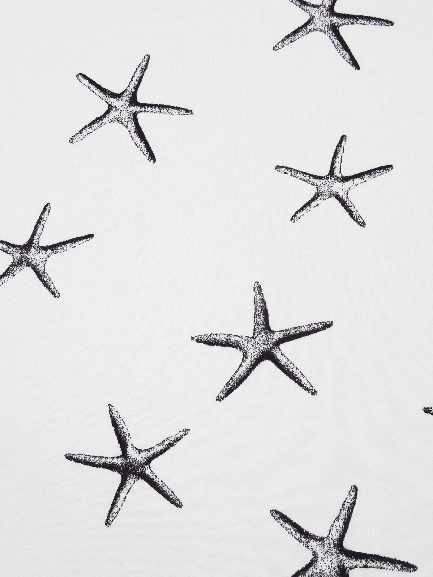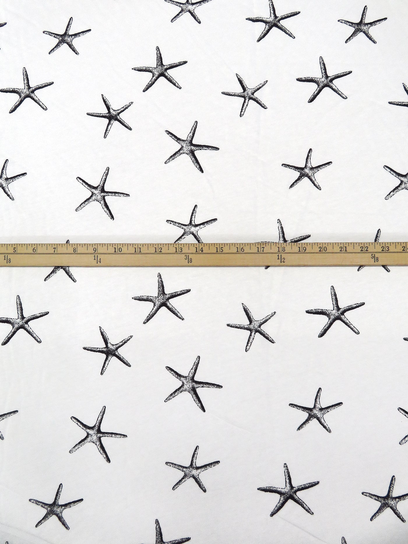 Warm White/Black 100% Cotton Starfish Print Jersey Knit 64W