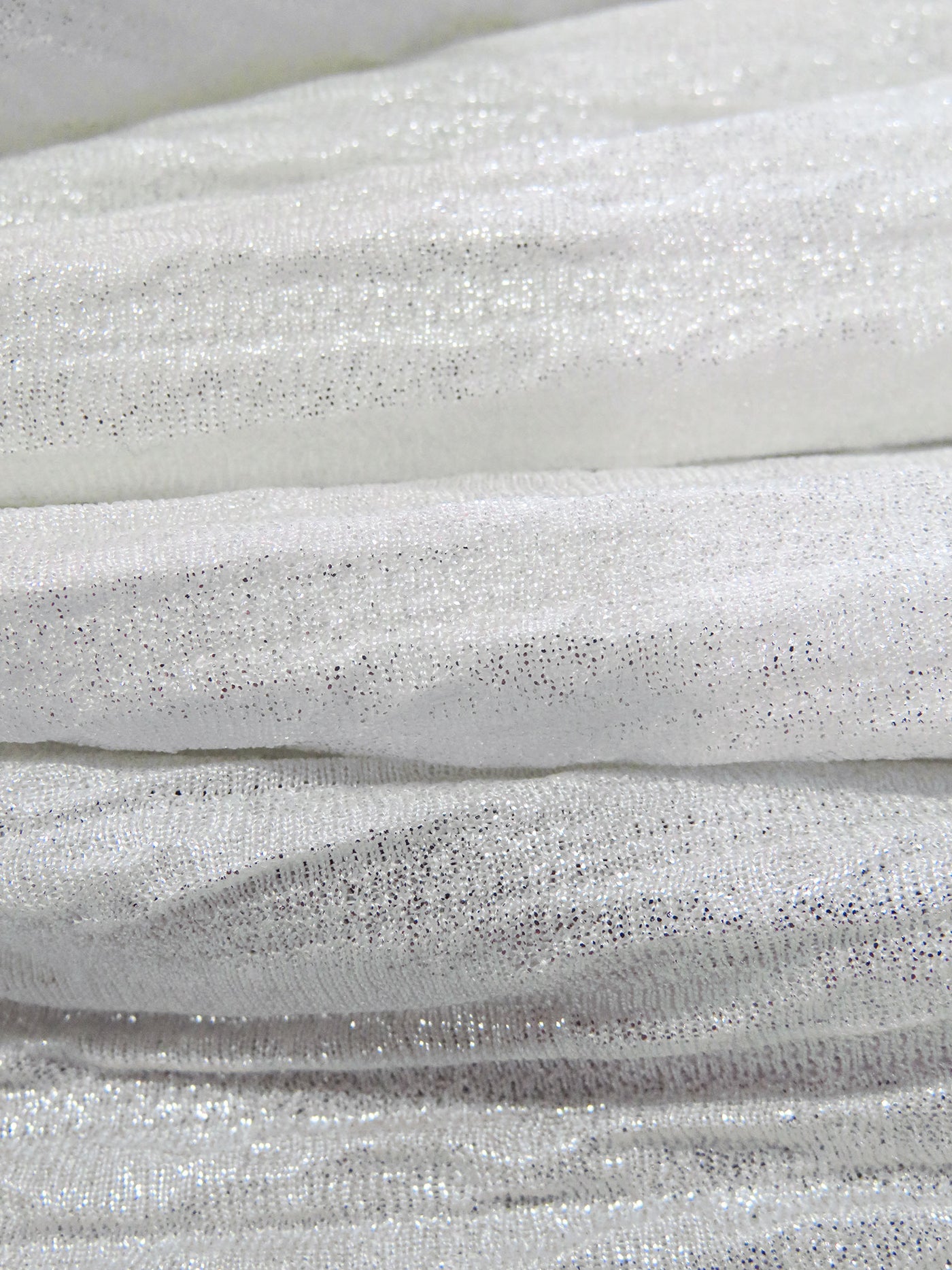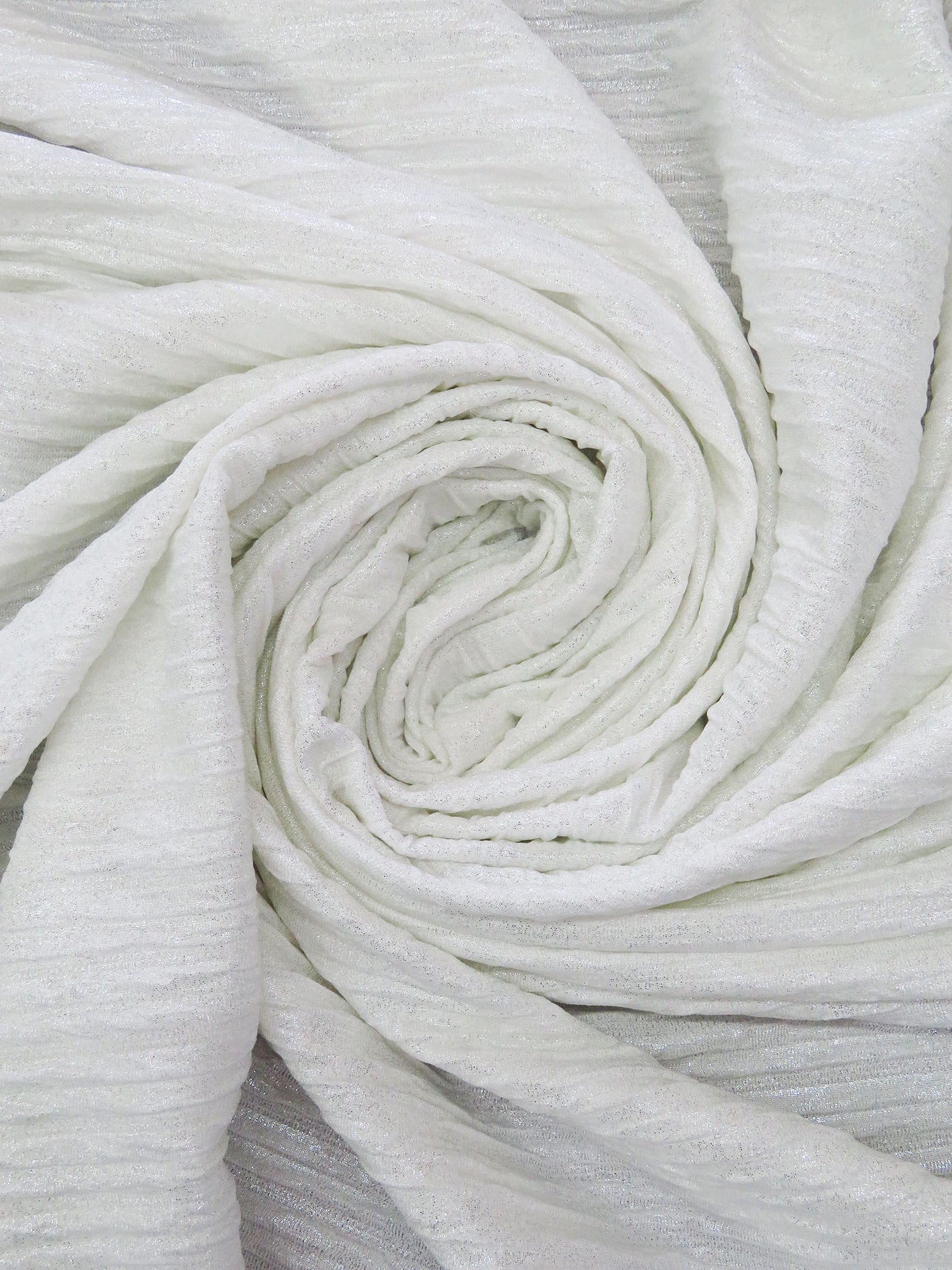 Warm White/Silver Polyester/Lycra Puckered Horizontal Stripe Weave Double Knit 60W