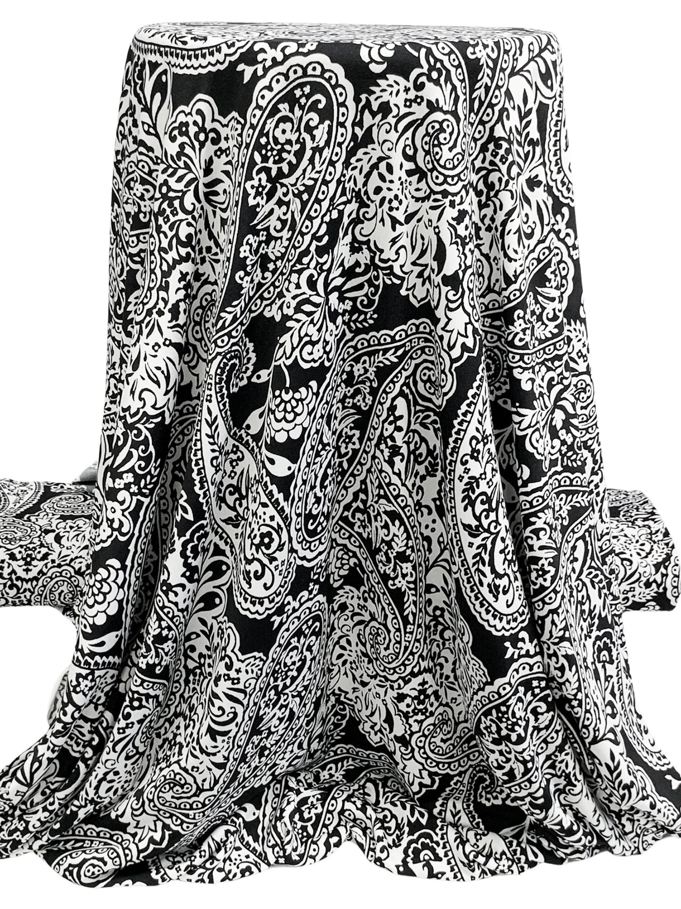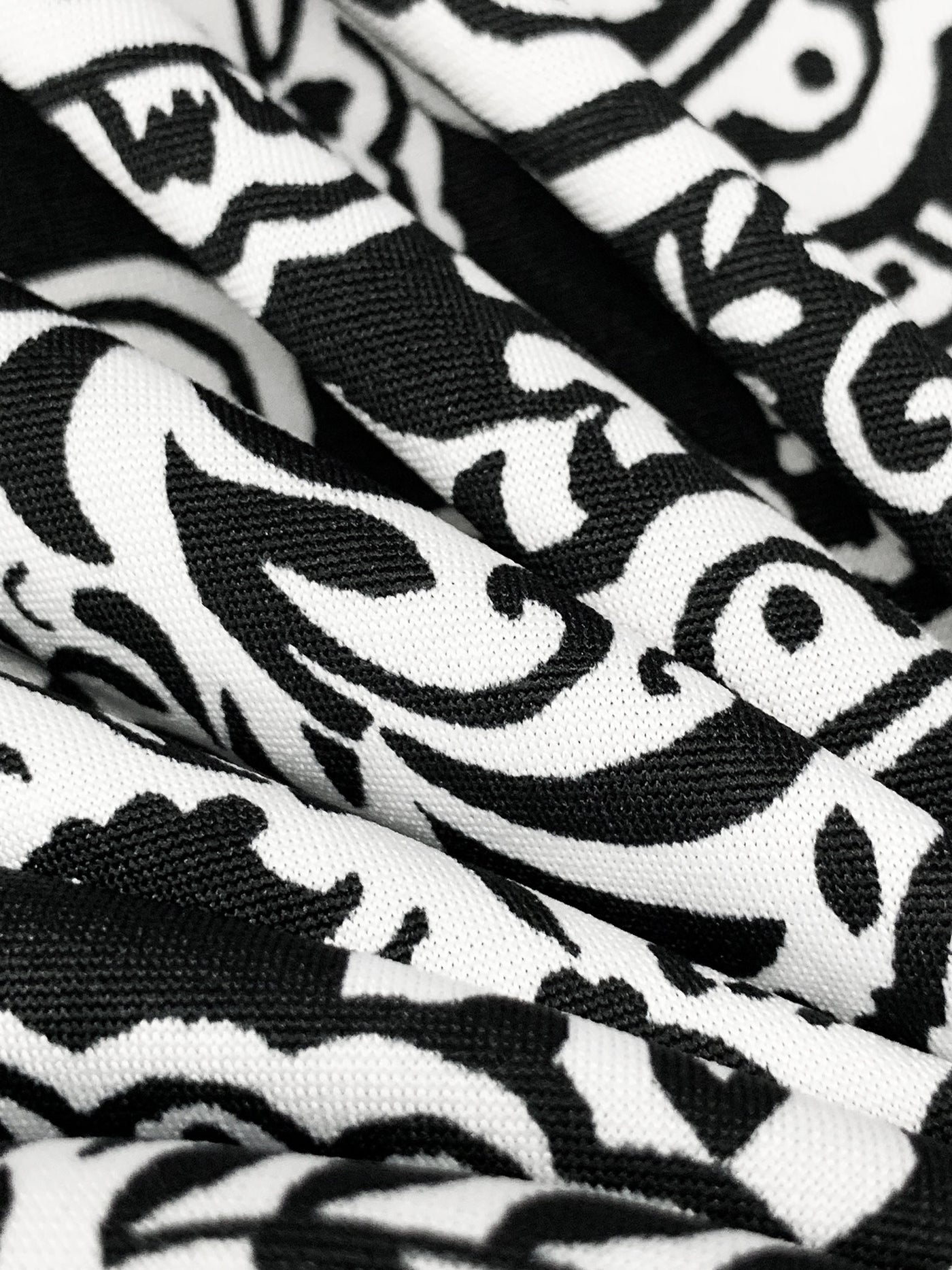 White/Black Polyester/Lycra Floral Paisley Print DTY Knit 61W