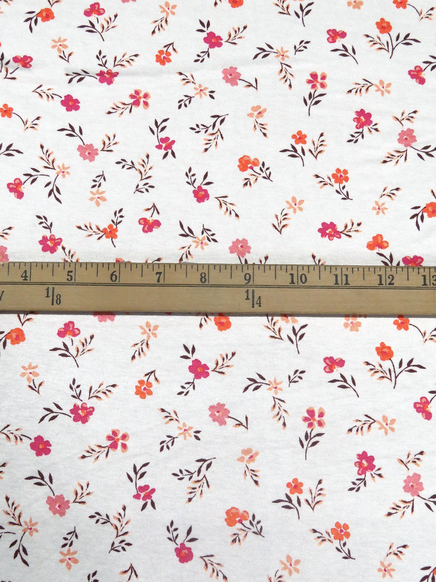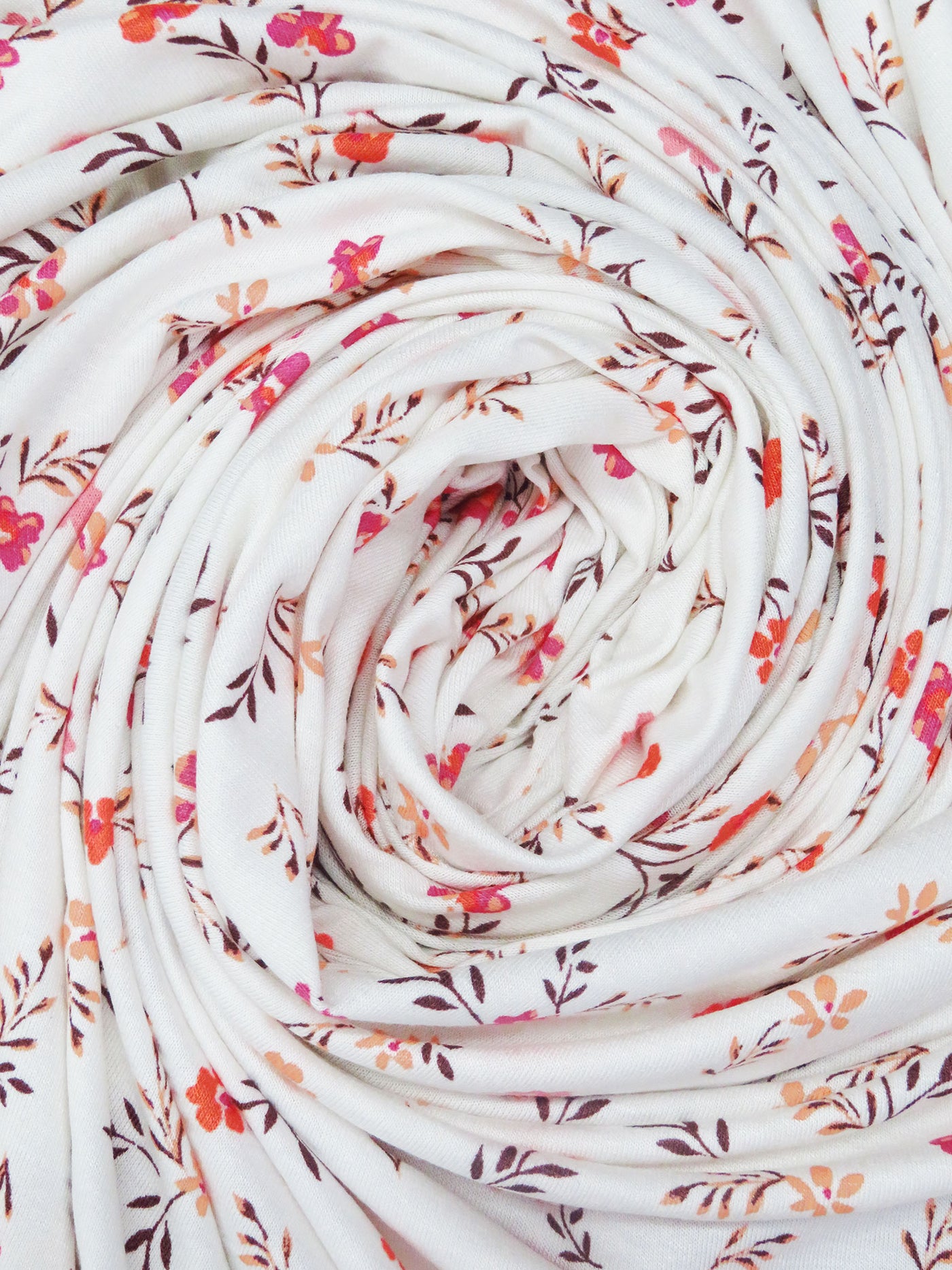 White/Dark Brown/Light Coral/Multi Rayon/Lycra Small Floral Print Jersey Knit 62W