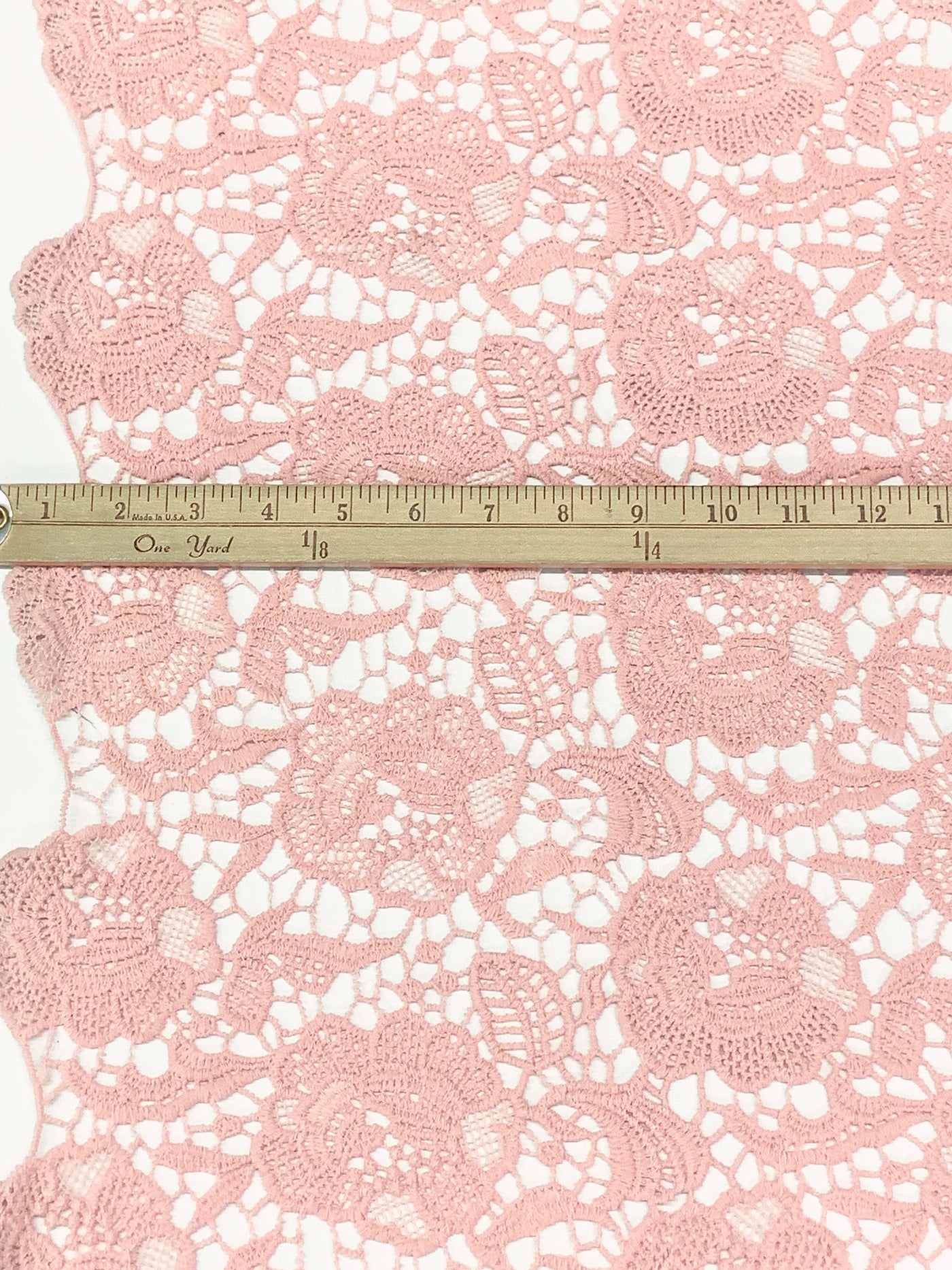 Apricot Rose Pink 100% Polyester Double Scalloped Border Ornate Floral Guipure Lace - Famous Dress Designer - 40W