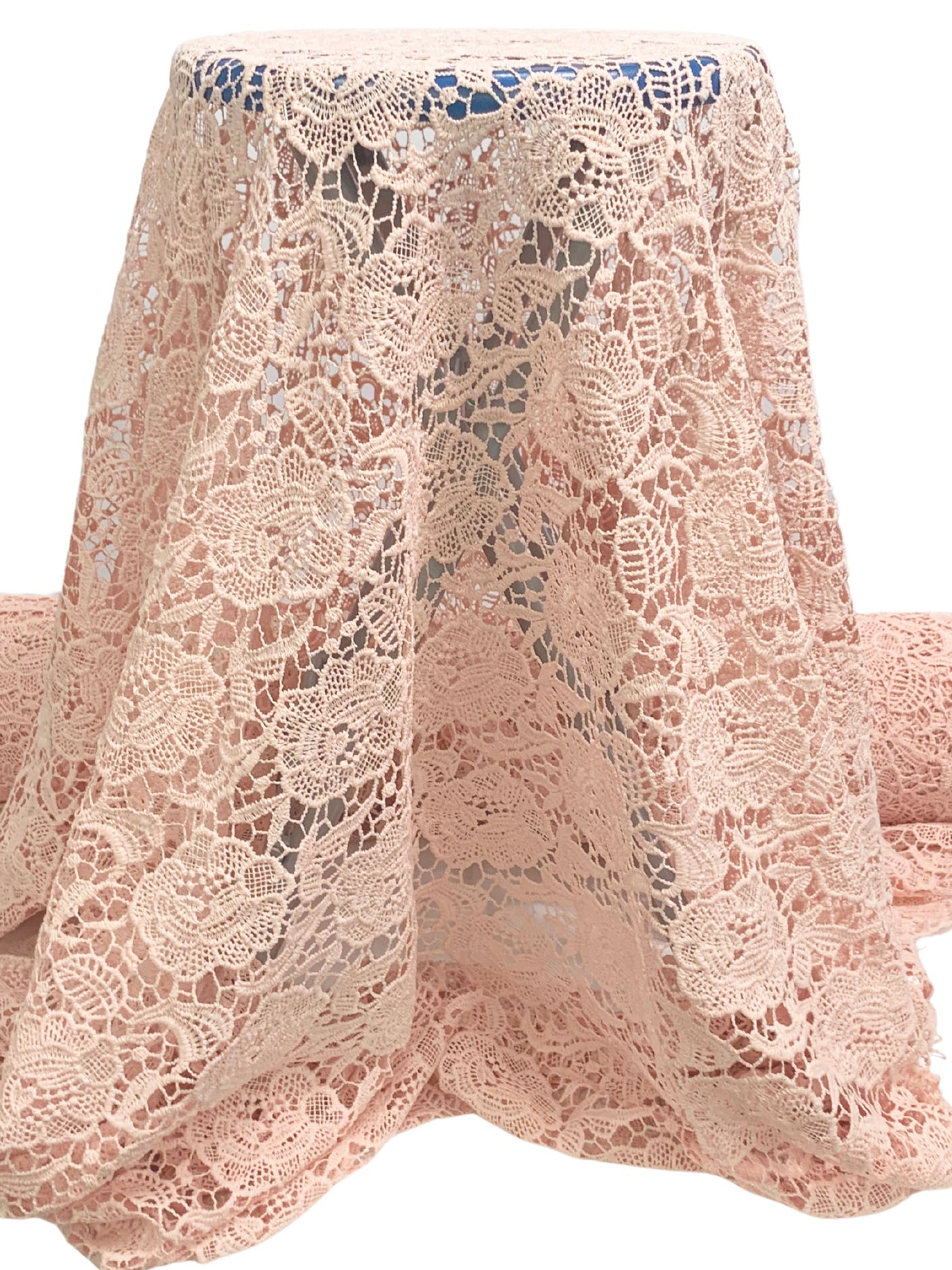 - Additional: Guipure Lace. Soft, Textured Hand. Soft Drape. Sheer. Double Scalloped Border