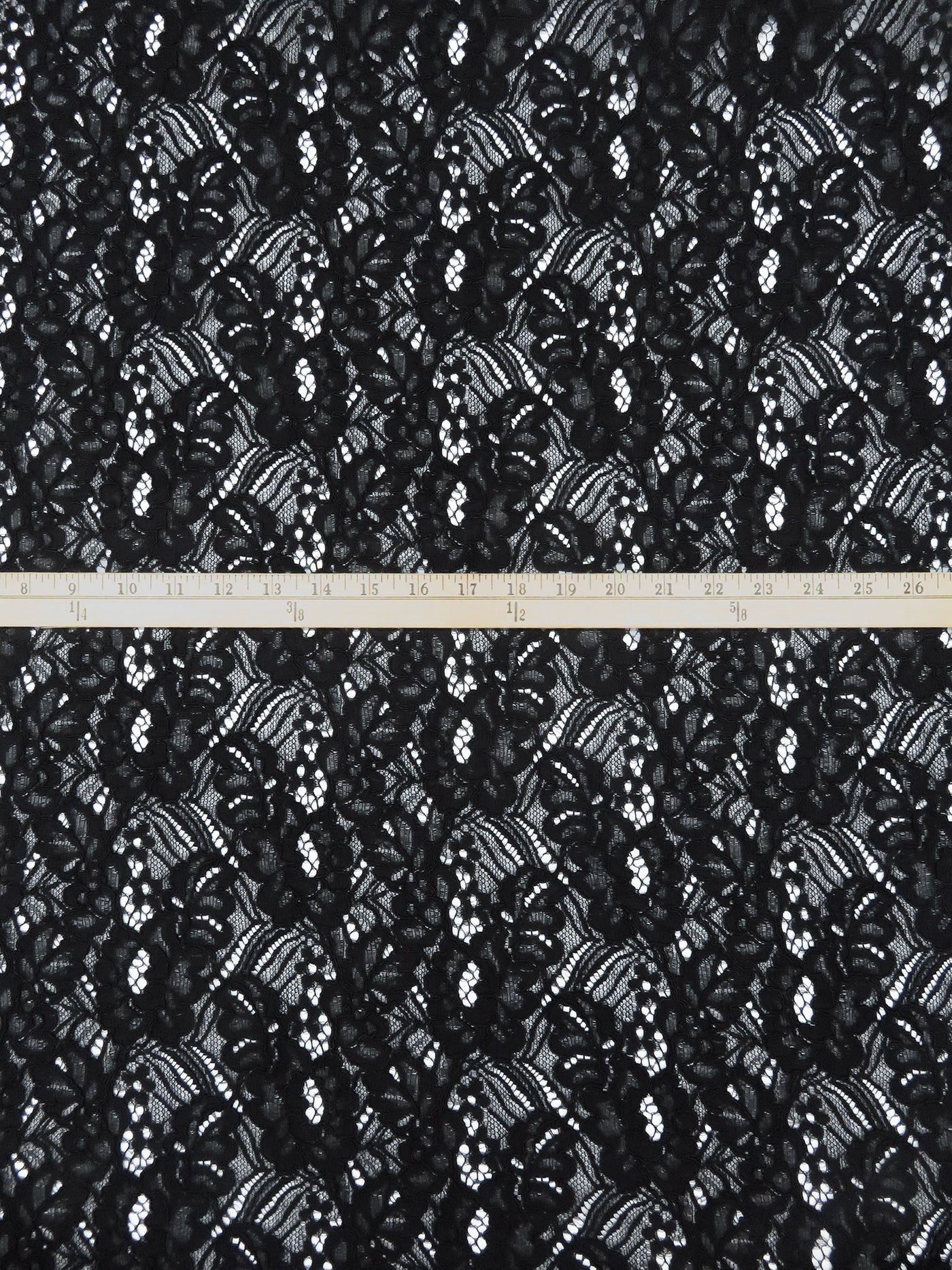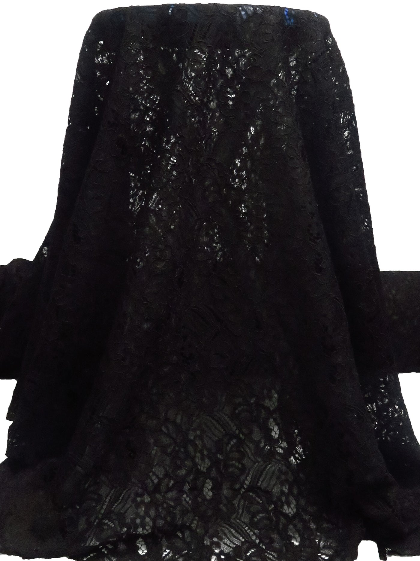 Black 100% Polyester Abstract Floral Weave Corded Lace - NY Designer - 48W