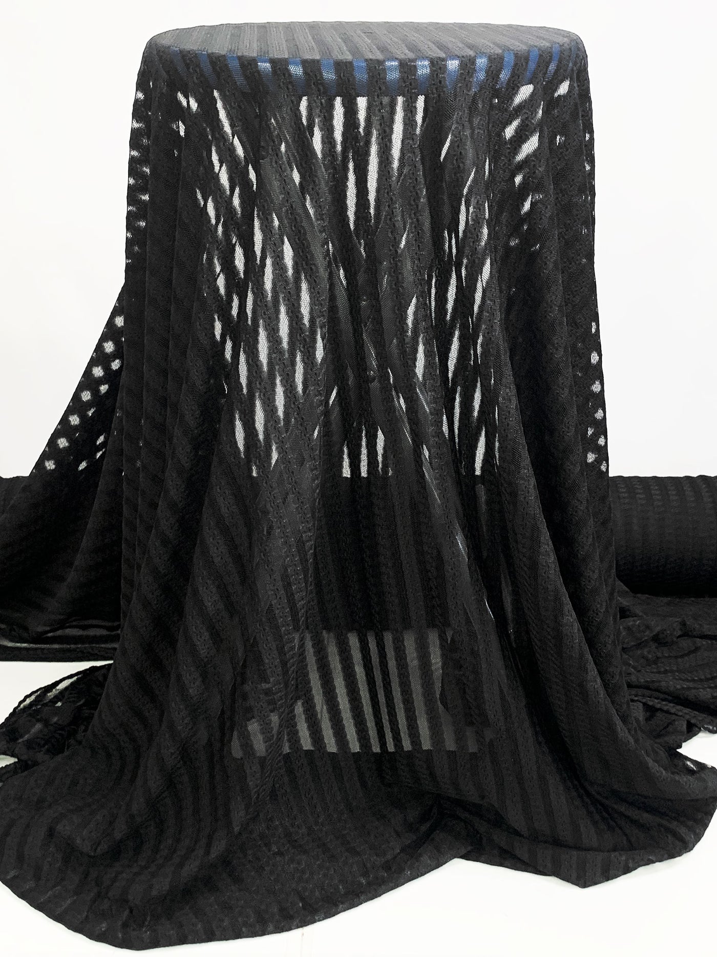 Black Polyester/Lycra Vertical Stripe Design Stretch Lace Netting 60W