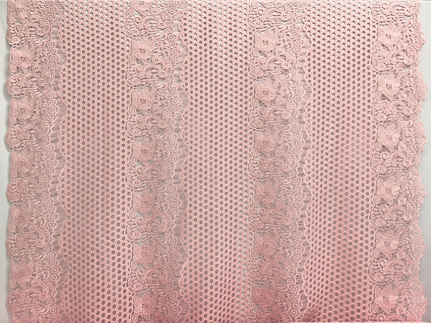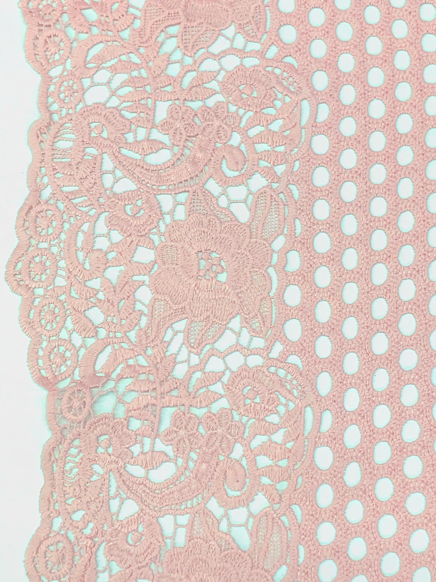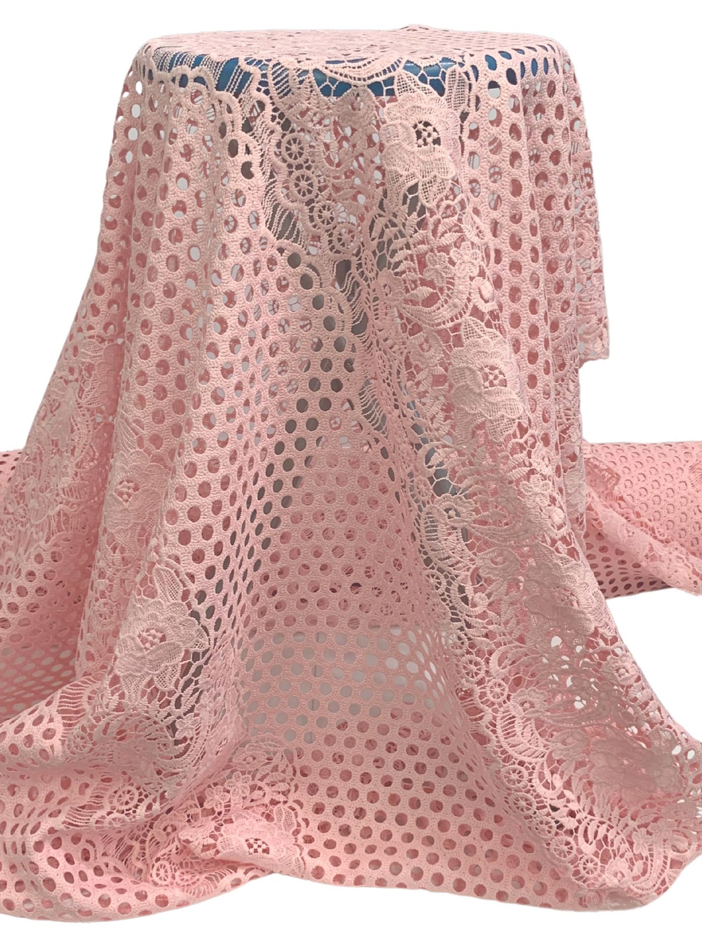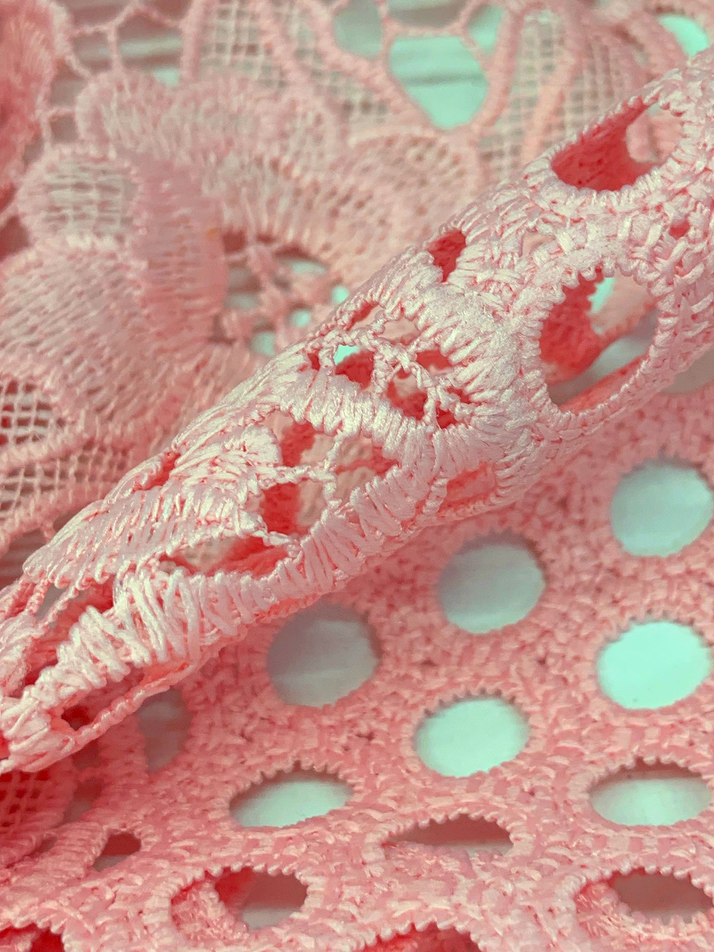 Champagne Pink 100% Polyester Double Scalloped Border Ornate Floral Guipure Lace - Famous Dress Designer - 46W