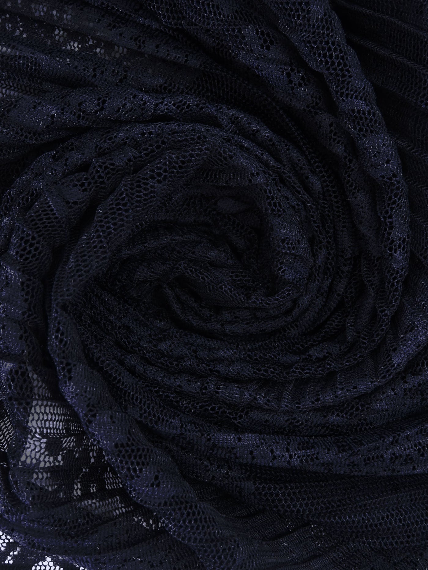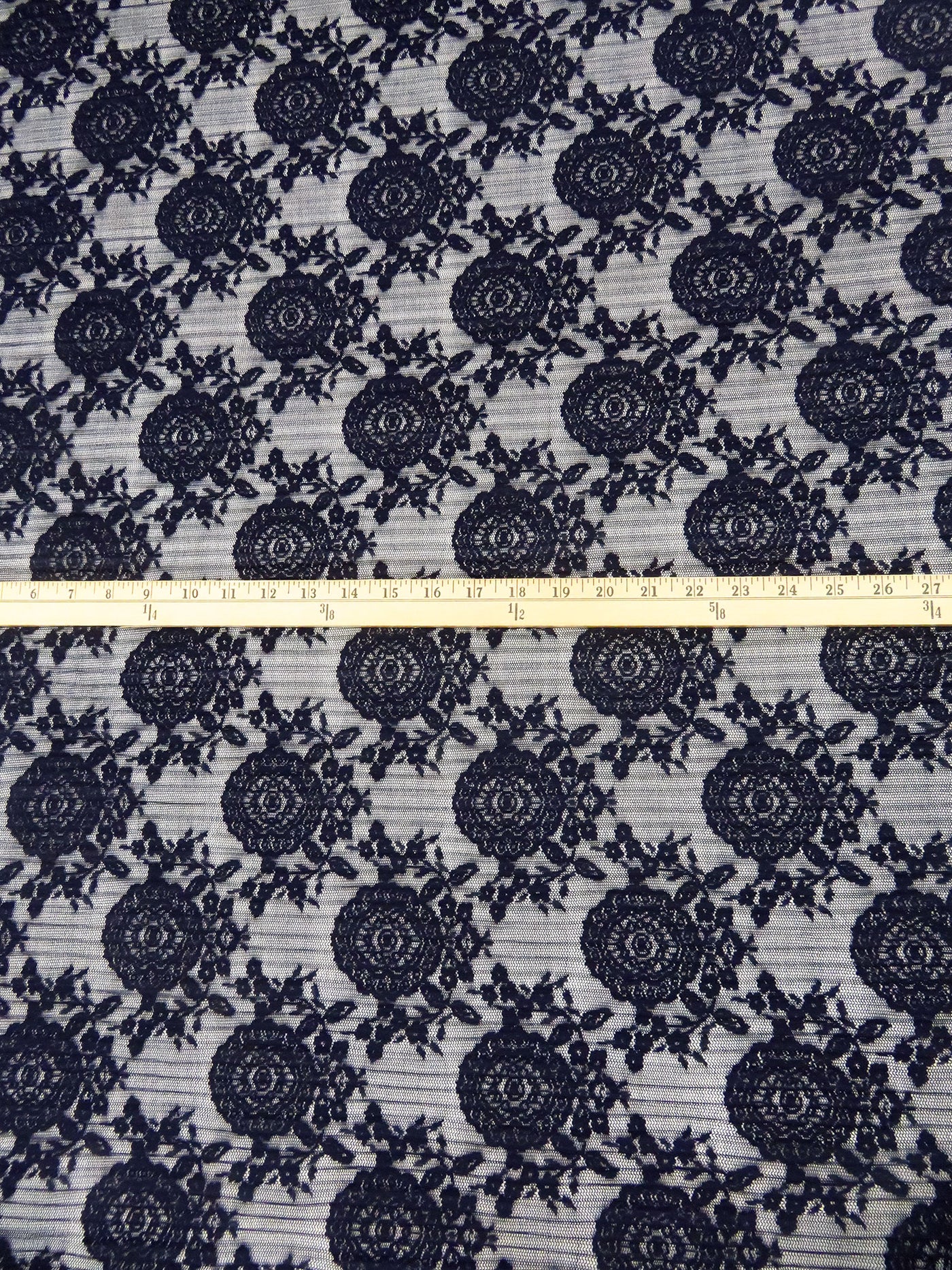 Midnight Navy 100% Polyester Medallion Floral Weave Pleated Lace Netting - NY Designer - 60W