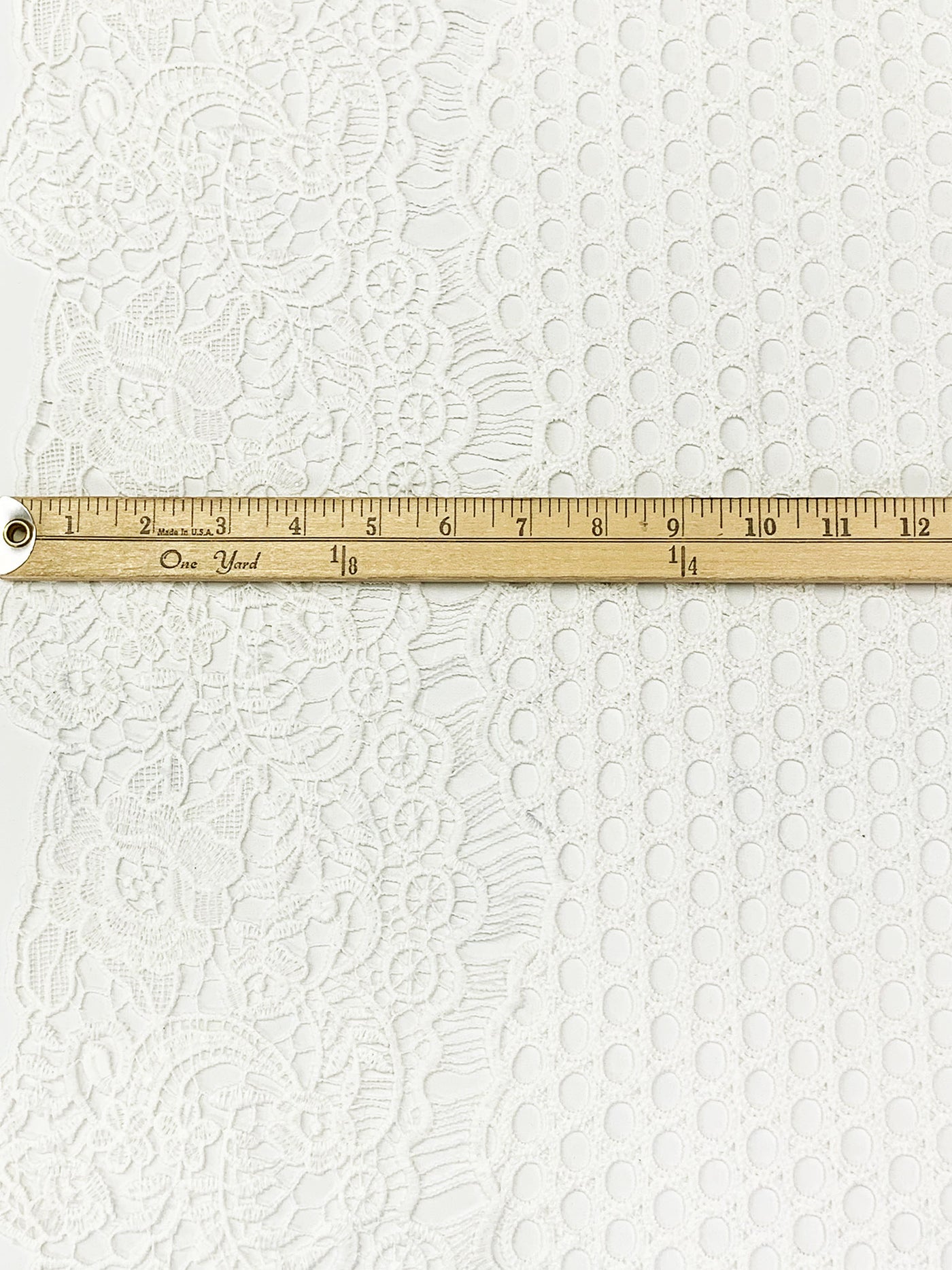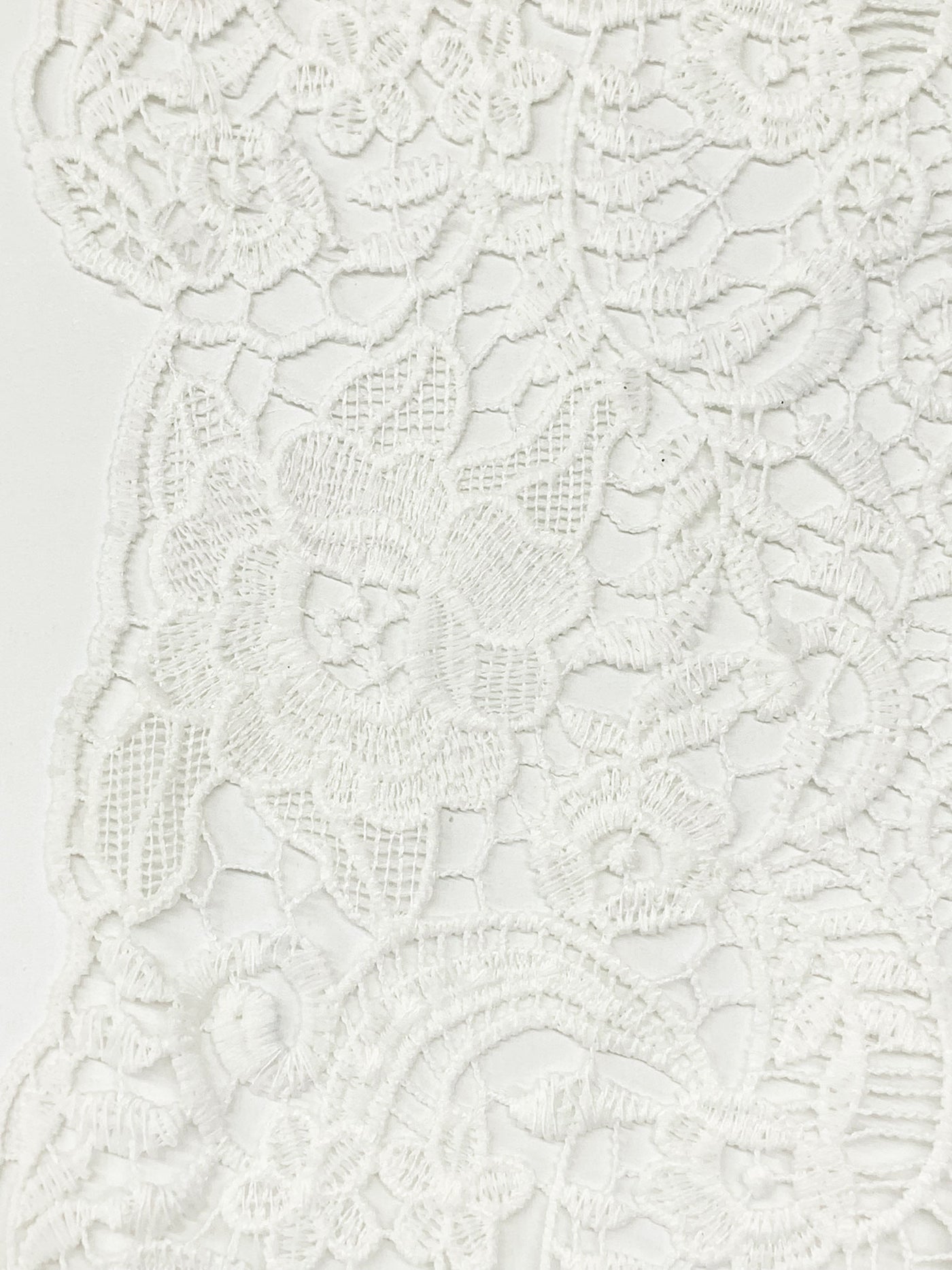 Off-White 100% Polyester Double Scalloped Border Ornate Floral Guipure Lace - Famous Dress Designer - 46W