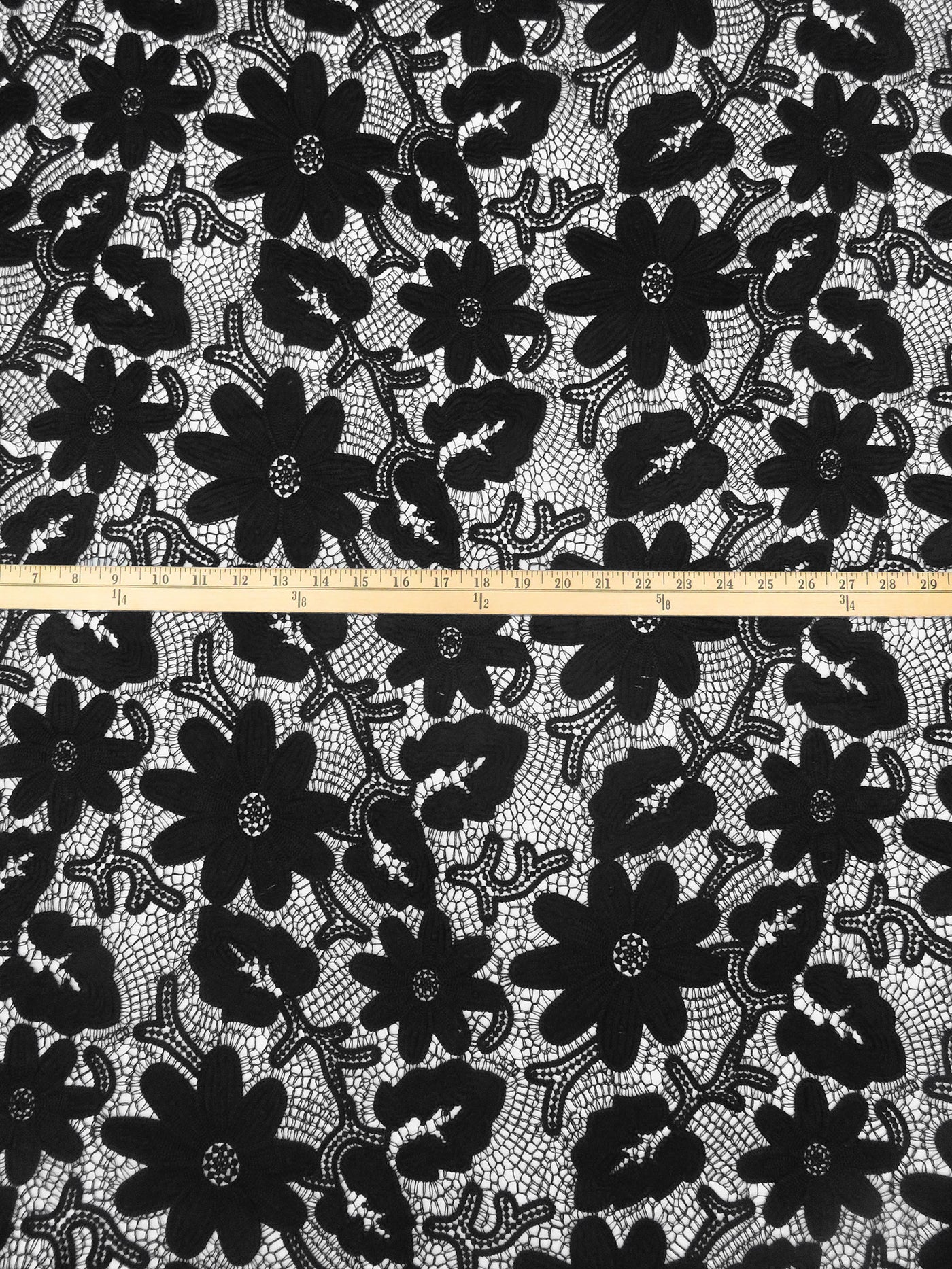 Rich Black 100% Polyester Floral Weave Guipere Lace - NY Designer - 50W
