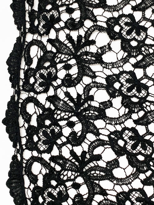 Black 100% Polyester Double Scalloped Border Ornate Guipure Lace - Famous Dress Designer - 44W