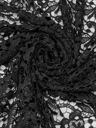 Rich Black 100% Polyester Floral Weave Guipere Lace - NY Designer - 50W