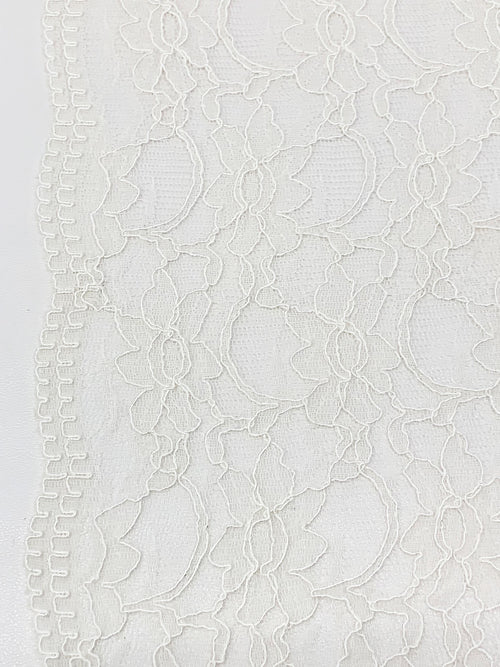 Pale Ivory 100% Polyester Double Scalloped Border Floral Design Corded Lace - Famous Dress Designer - 50W