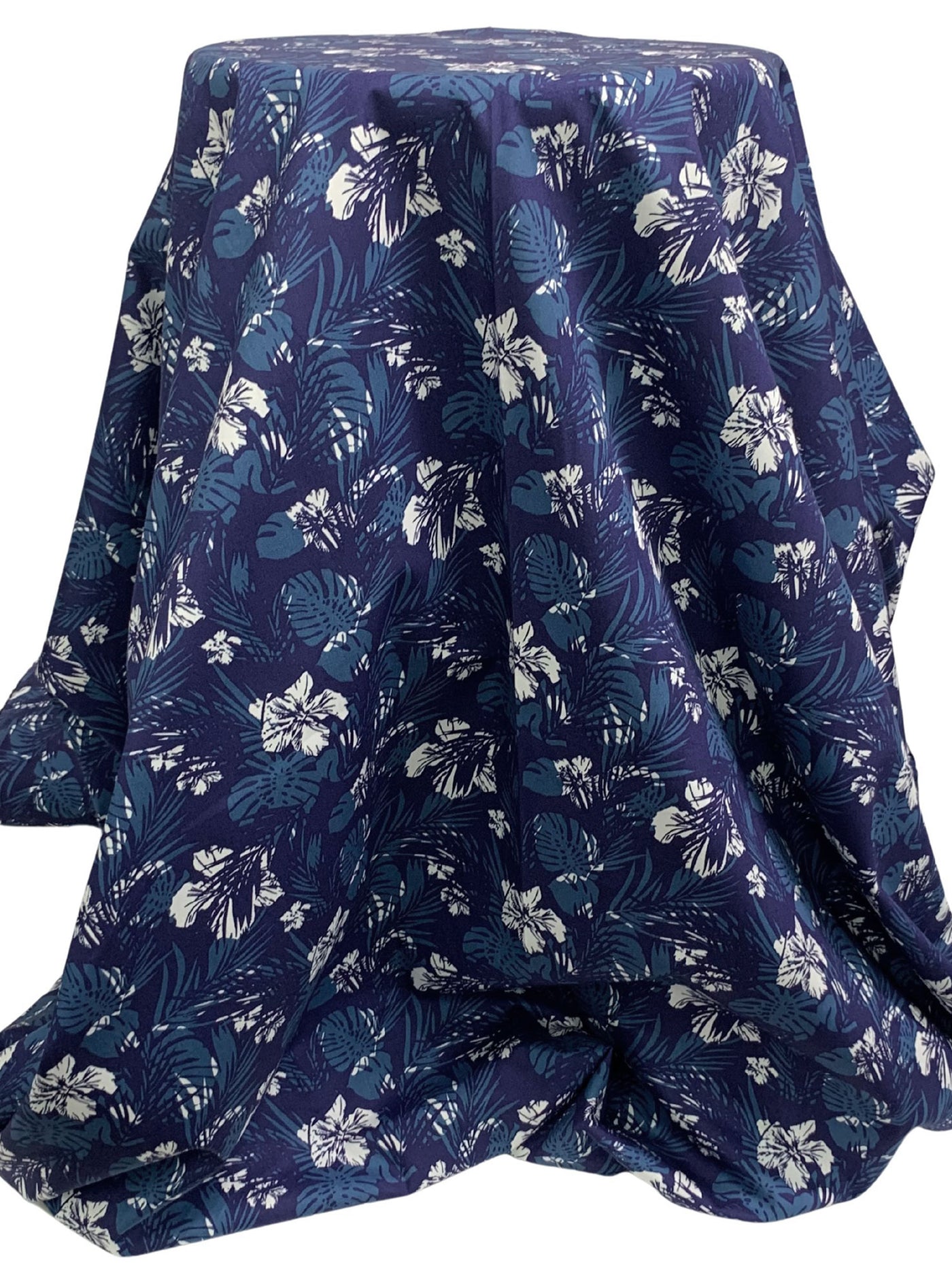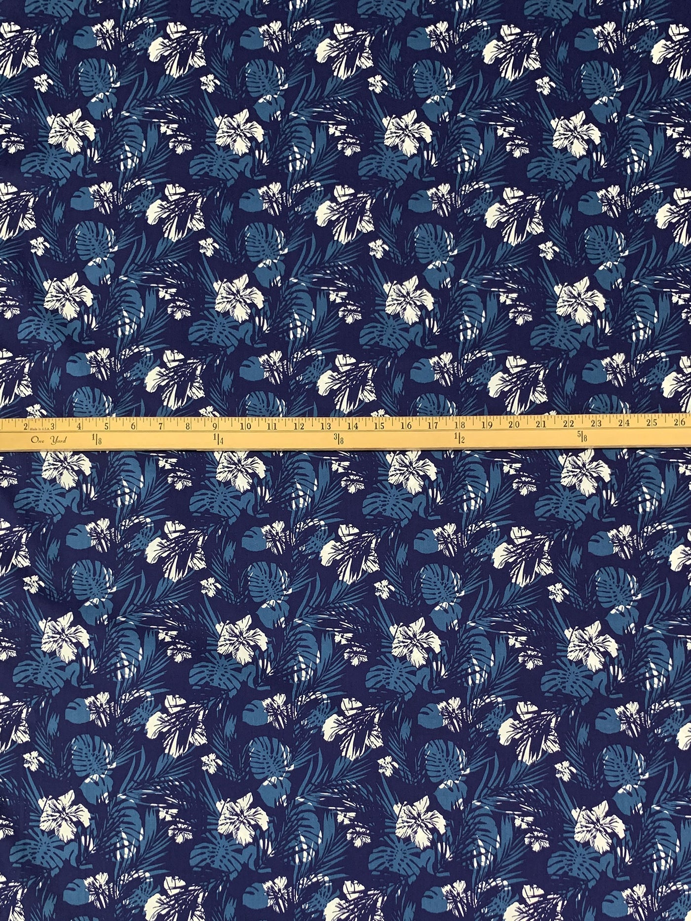 Deep Prussian Blue/White/Sea Blue 100% Cotton Tropical Floral Print Lawn 56W