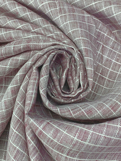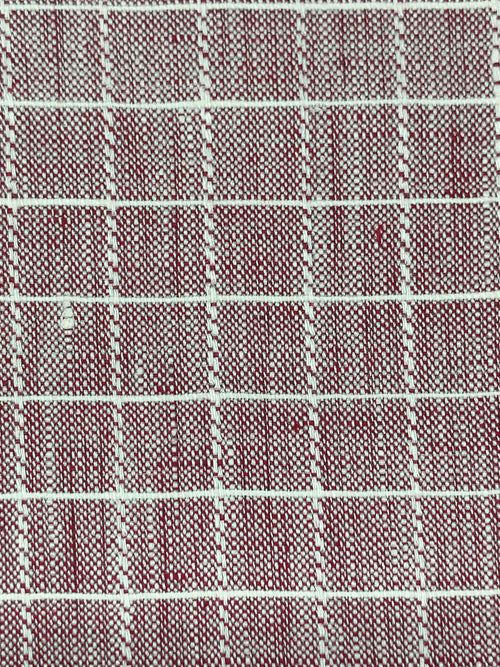 Burgundy/White 100% Linen Yarn-Dyed Grid Weave Shirt-Weight Woven - European Mill - 59W