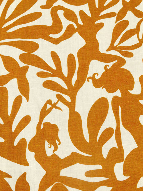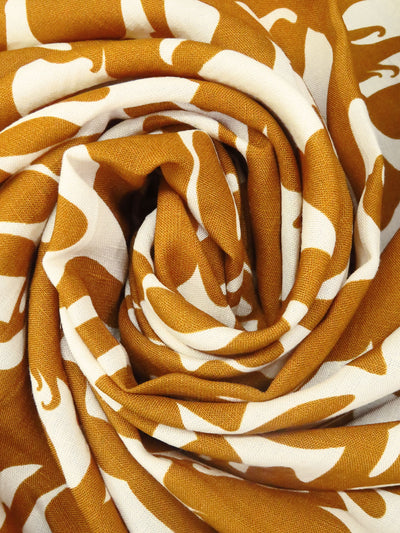 Mustard Brown/Cream Rayon/Linen Abstract Figure Print Shirt Weight Woven - NY Designer - 56W