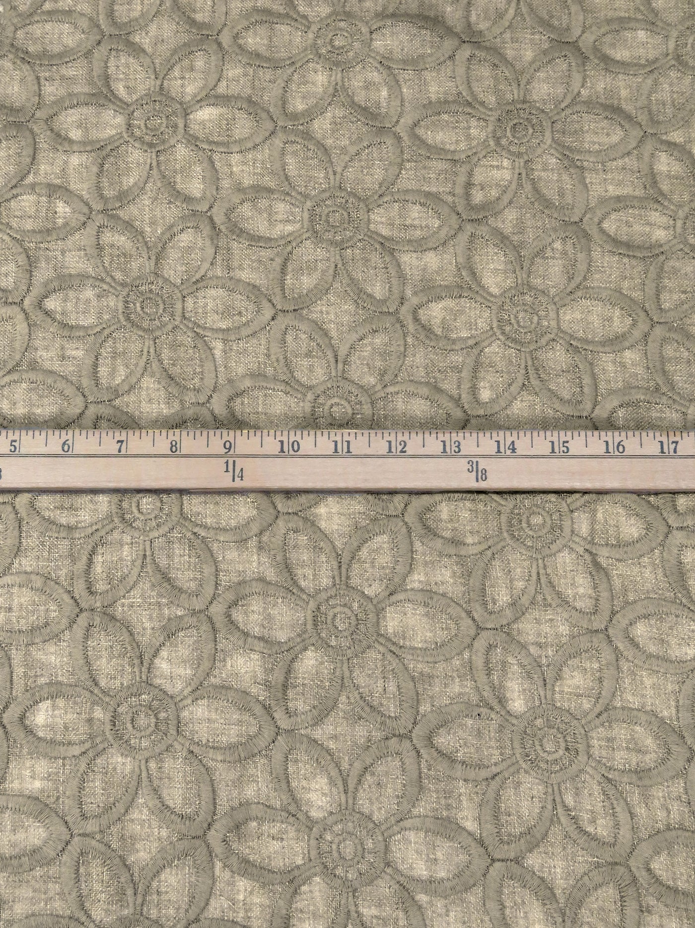 - Pattern Repeat: Large Embroidered Floral Design 4" Vertical x 7.5" Horizontal Repeat