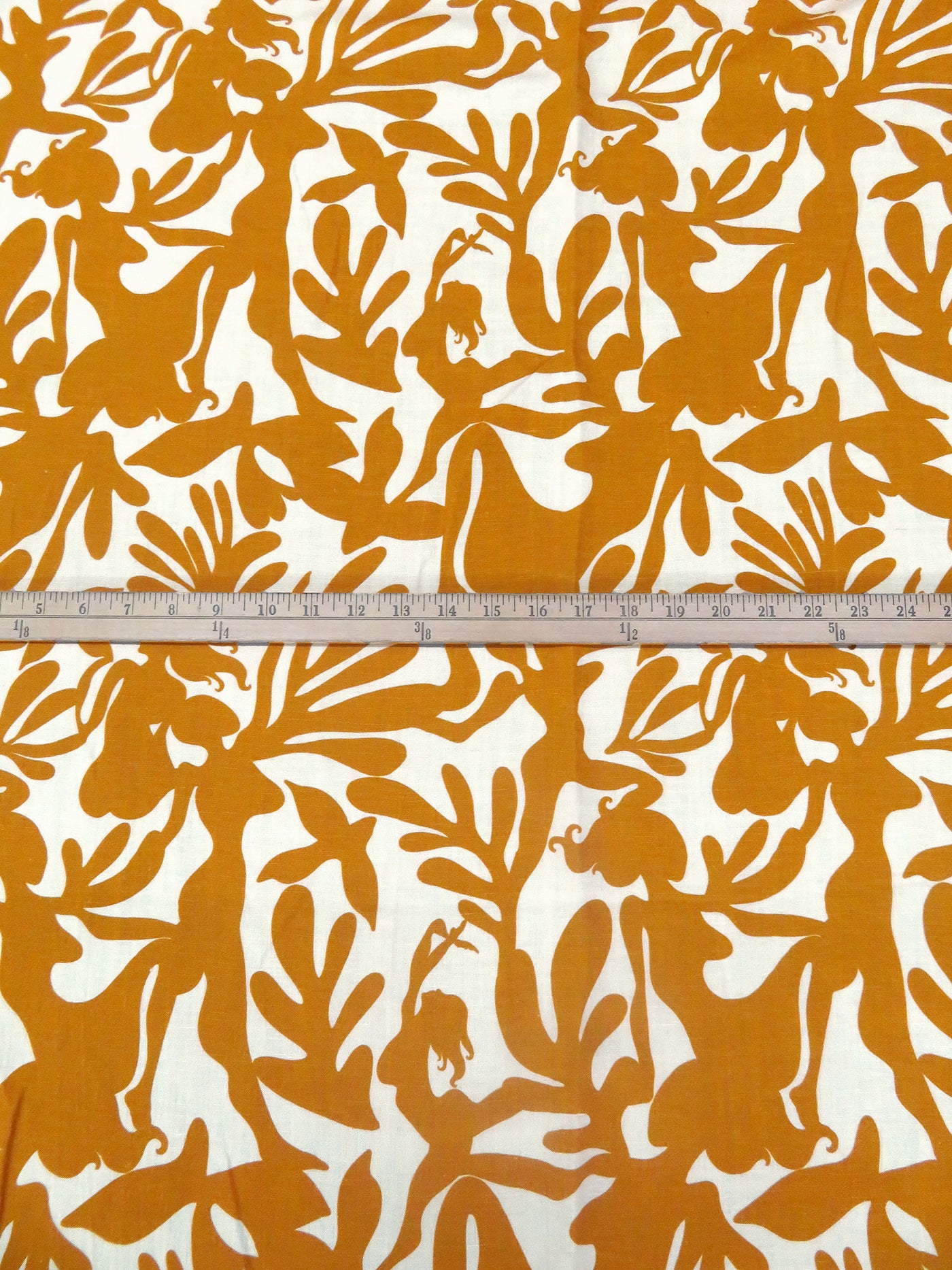 Mustard Brown/Cream Rayon/Linen Abstract Figure Print Shirt Weight Woven - NY Designer - 56W