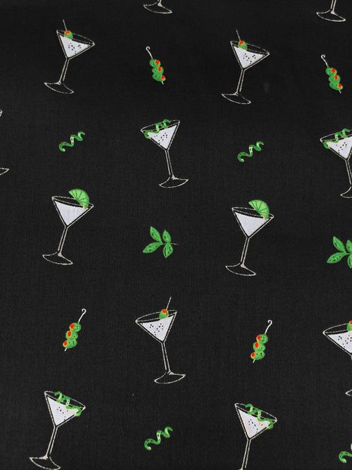 Black/Polar Ice/Olivine/Multi 100% Cotton Cocktail Print Sateen Shirting - NY Designer - 57W