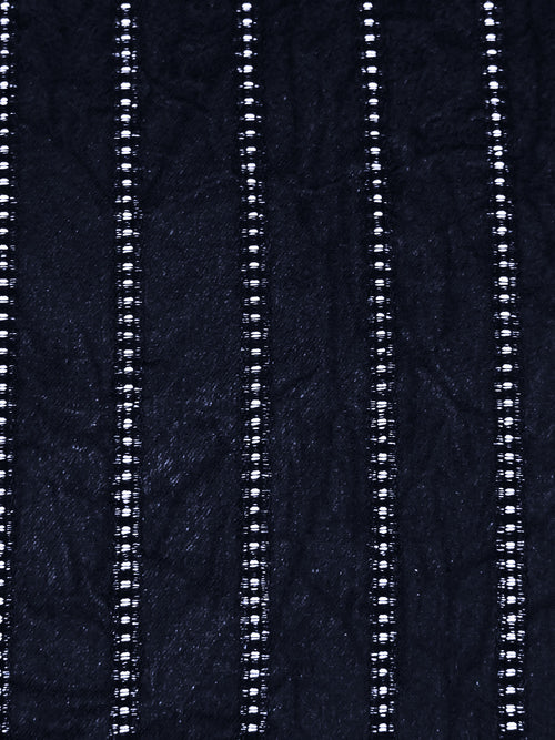 Midnight Navy 100% Polyester Vertical Stripe Leno Weave Blouse Weight Woven - NY Designer - 58W