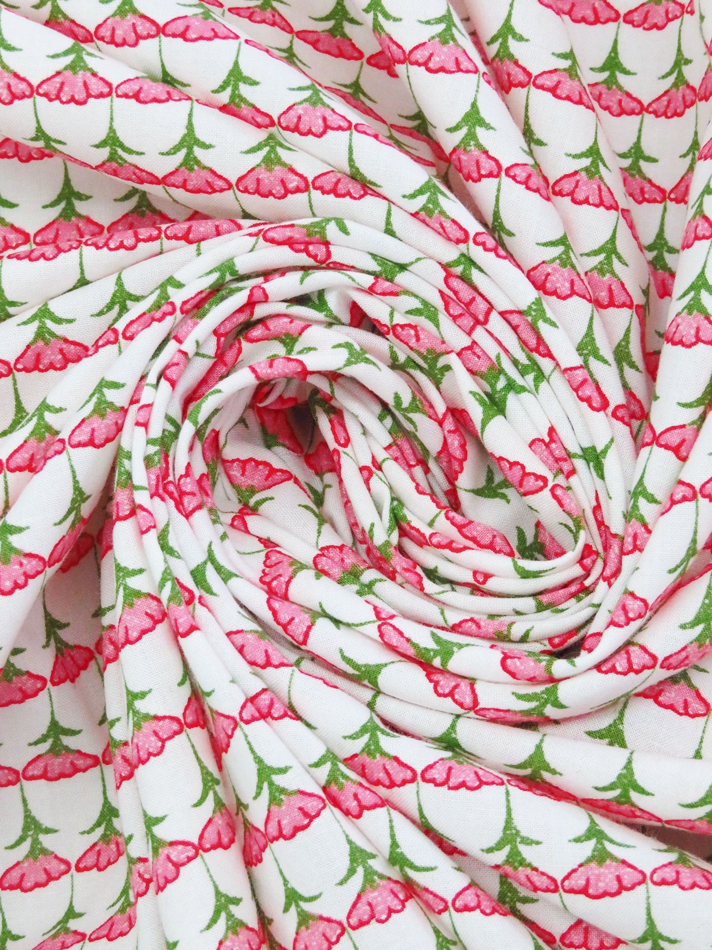 White/Fern Green/Light Coral/Multi 100% Cotton Floral Rows Print Lawn - NY Designer - 60W