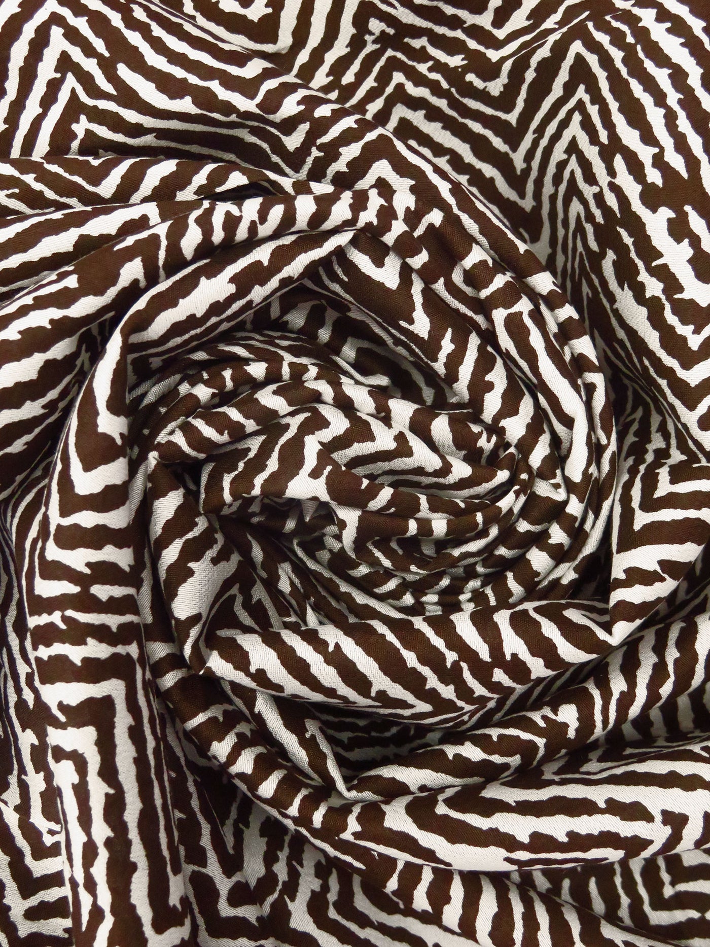 Bistre/Antique White 100% Silk Abstract Zig Zag Print Crepe De Chine - NY Designer - 45W