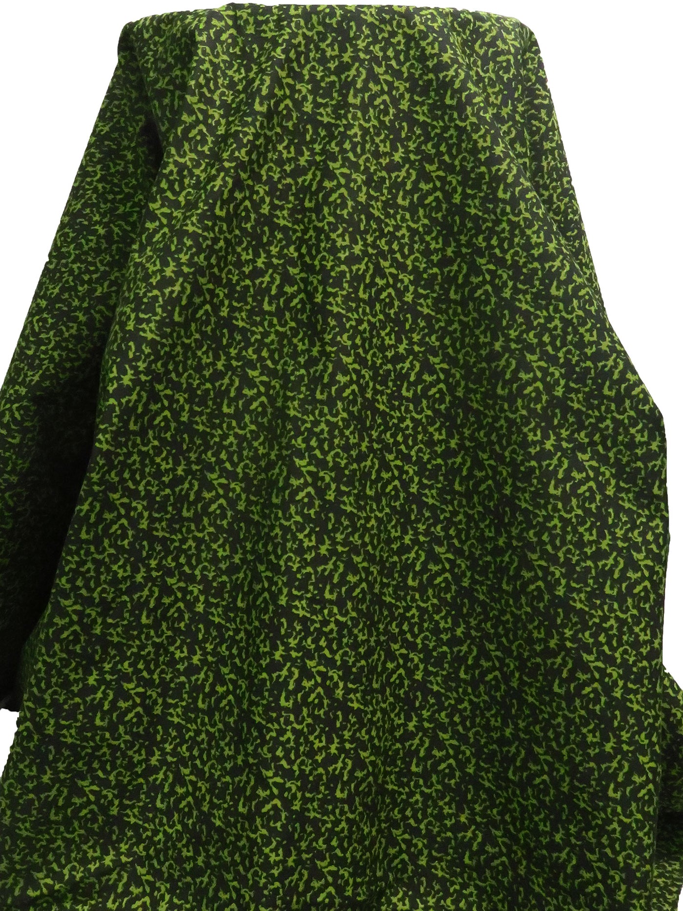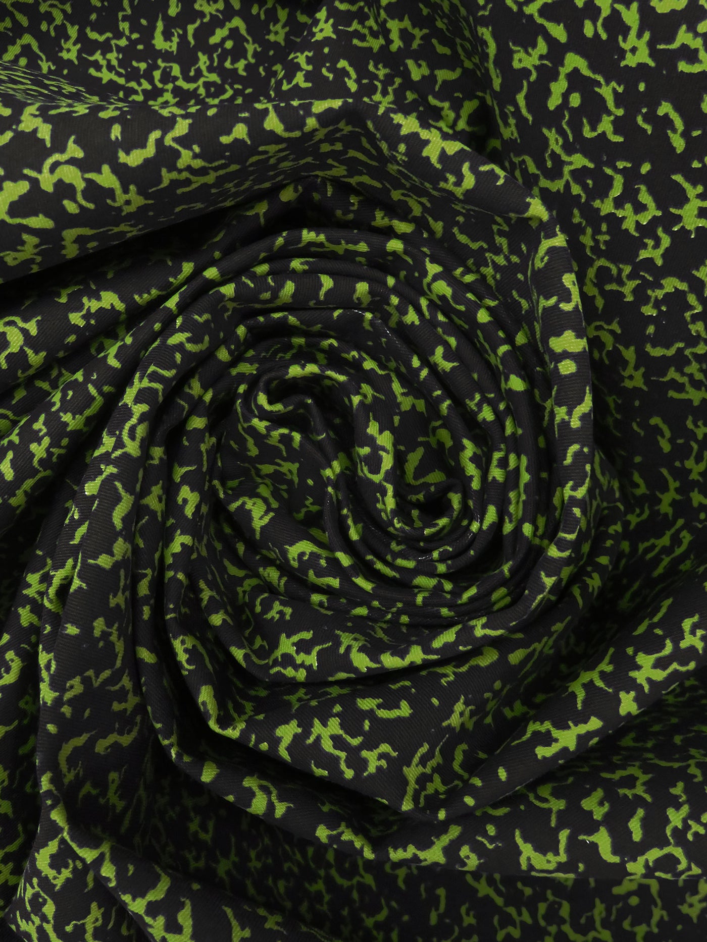Black/Moss Green Cotton/Lycra Composition Print Stretch Twill - NY Designer - 54W