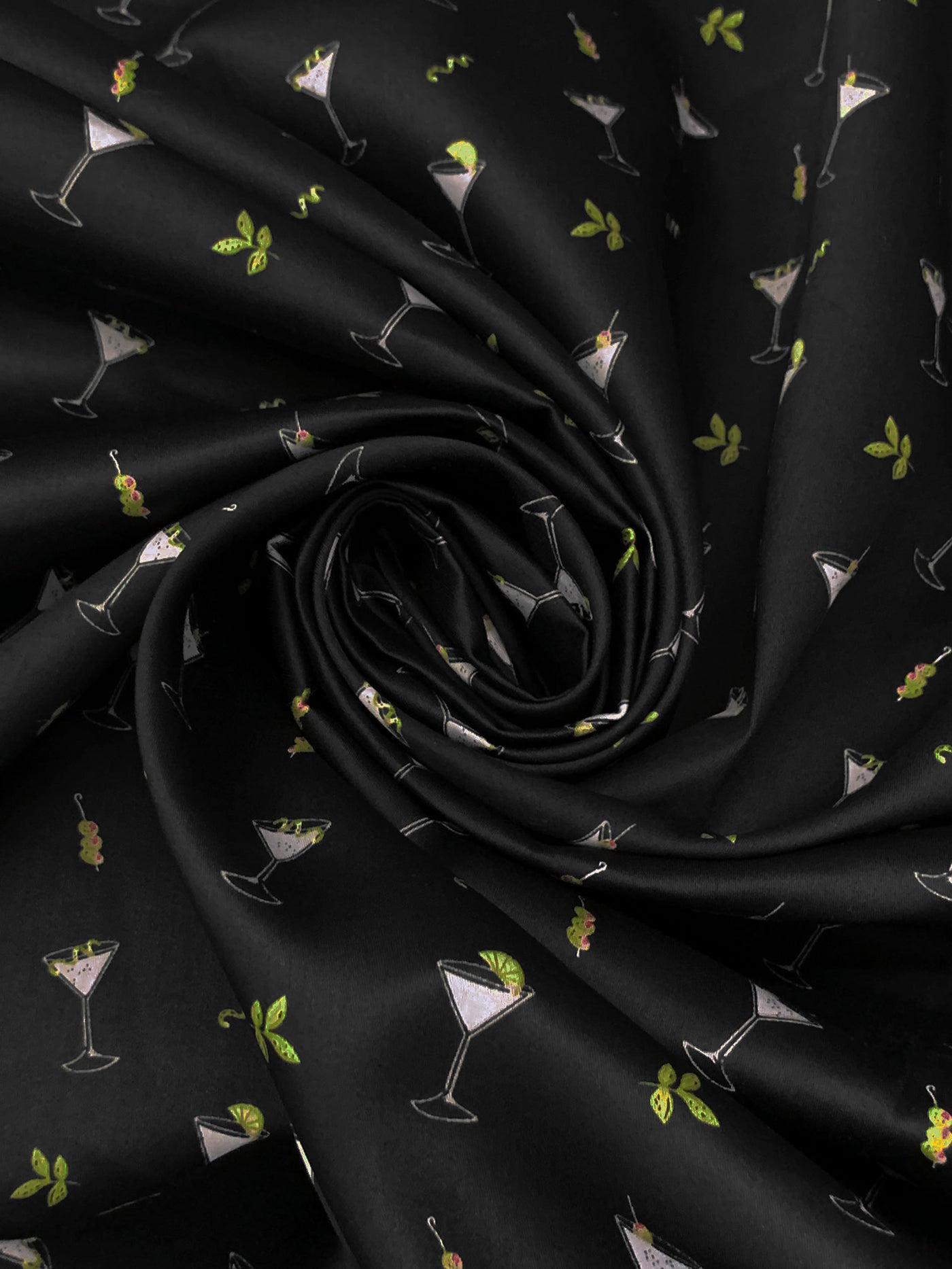 Black/Polar Ice/Olivine/Multi 100% Cotton Cocktail Print Sateen Shirting - NY Designer - 57W