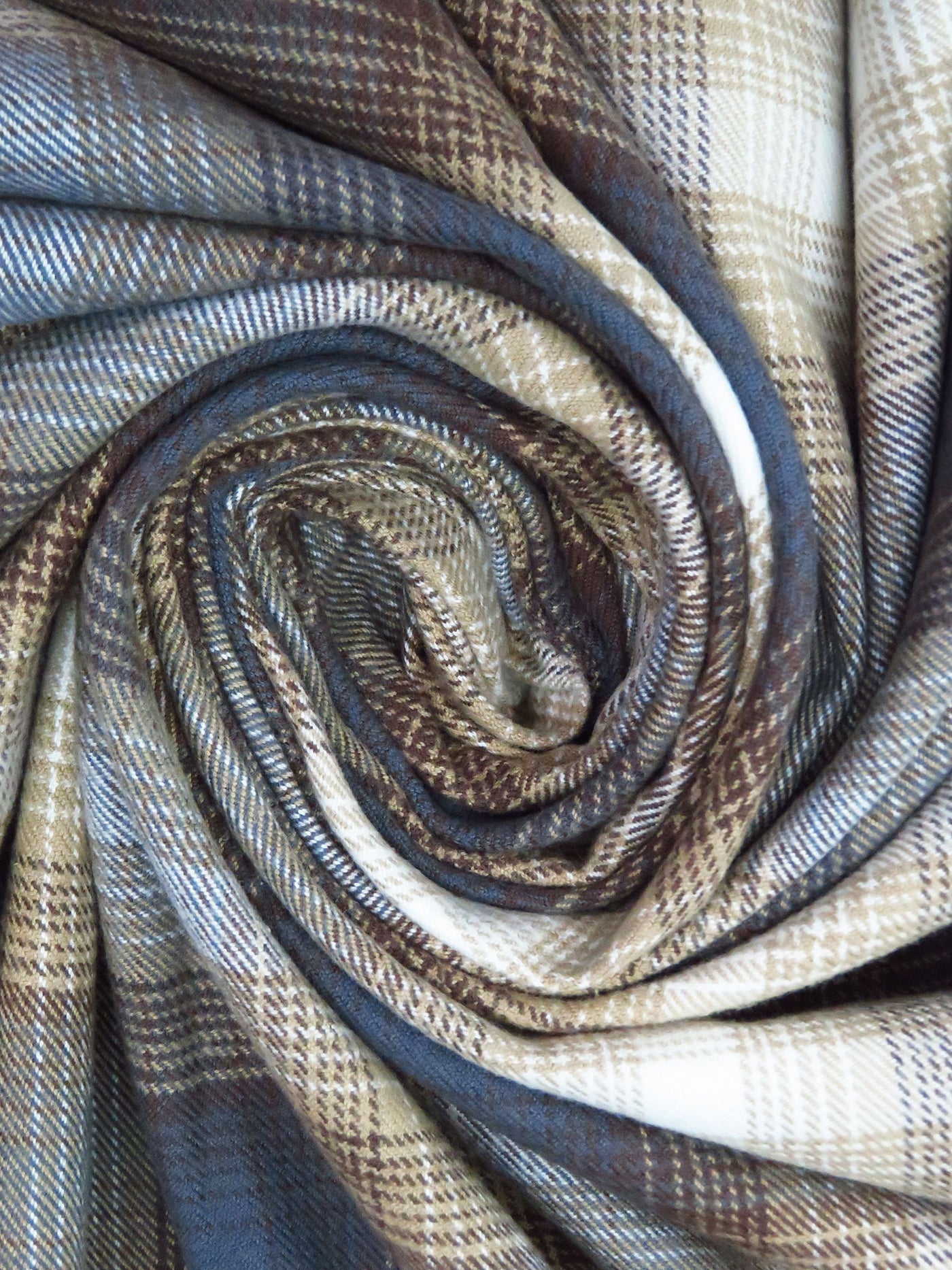 Dark Tan/White/Dark Cerulean/Dark Rose Ebony 100% Cotton Yarn-Dyed Plaid Weave Flannel Shirting - NY Designer - 54W