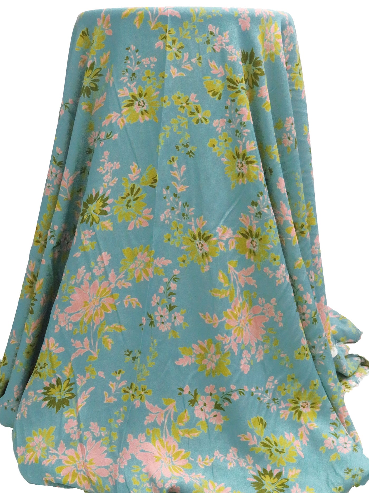 Green Sheen/Melon/Olive/Multi 100% Rayon Floral Print Crepe - NY Designer - 54W