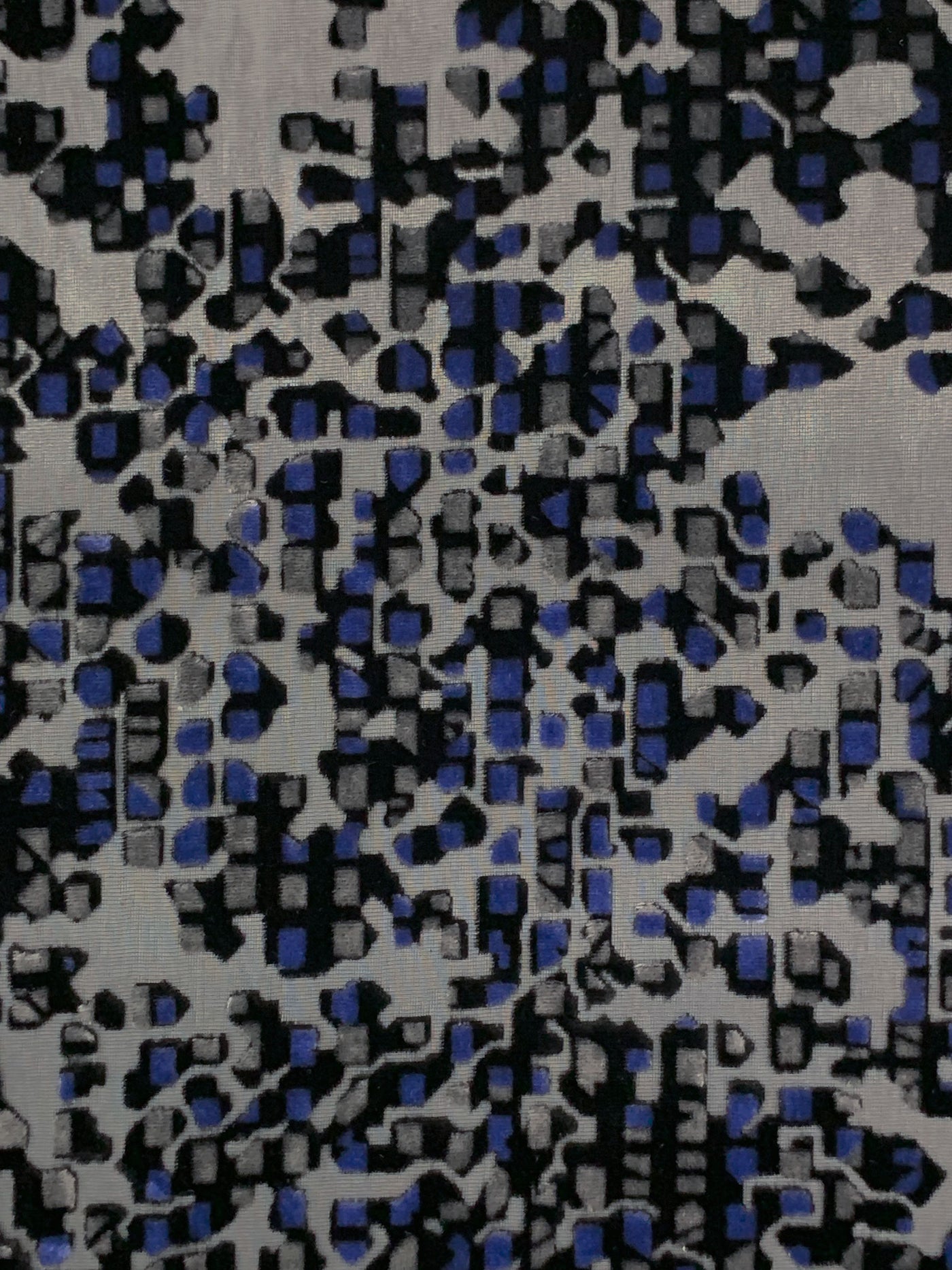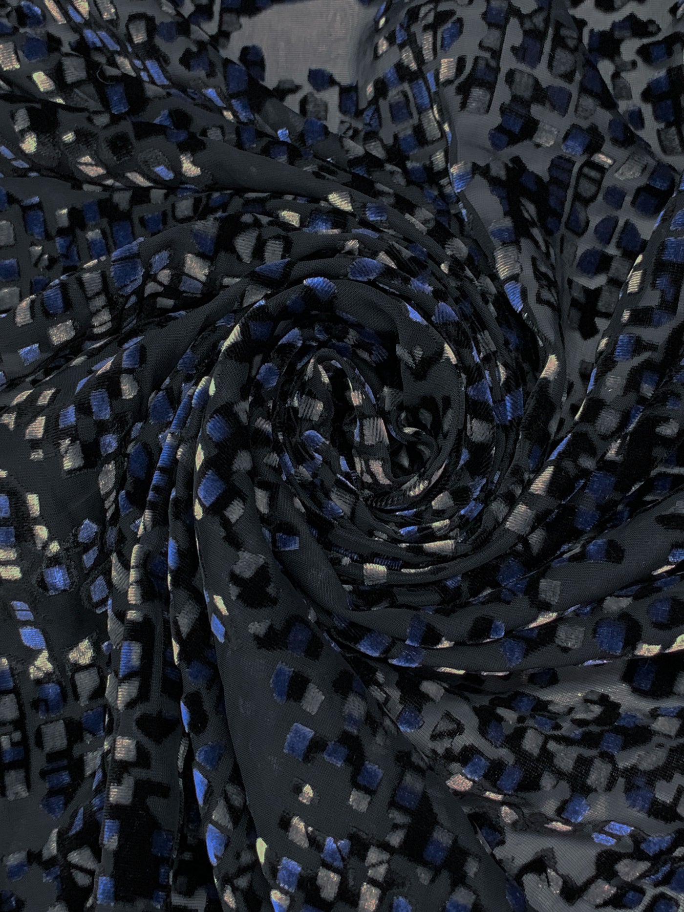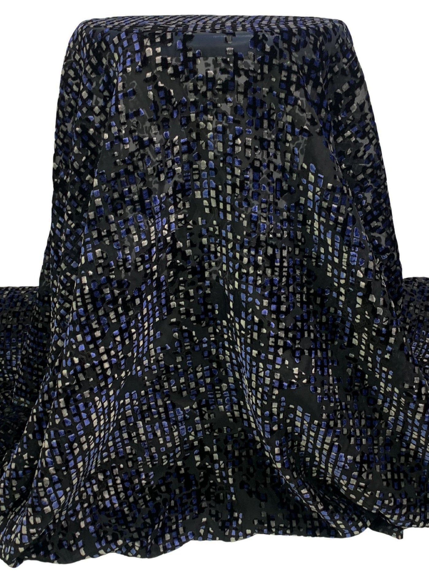 Navy/Gray/Black Polyester/Rayon Broken Mosaic Velvet Burnout Chiffon - NY Designer - 50W