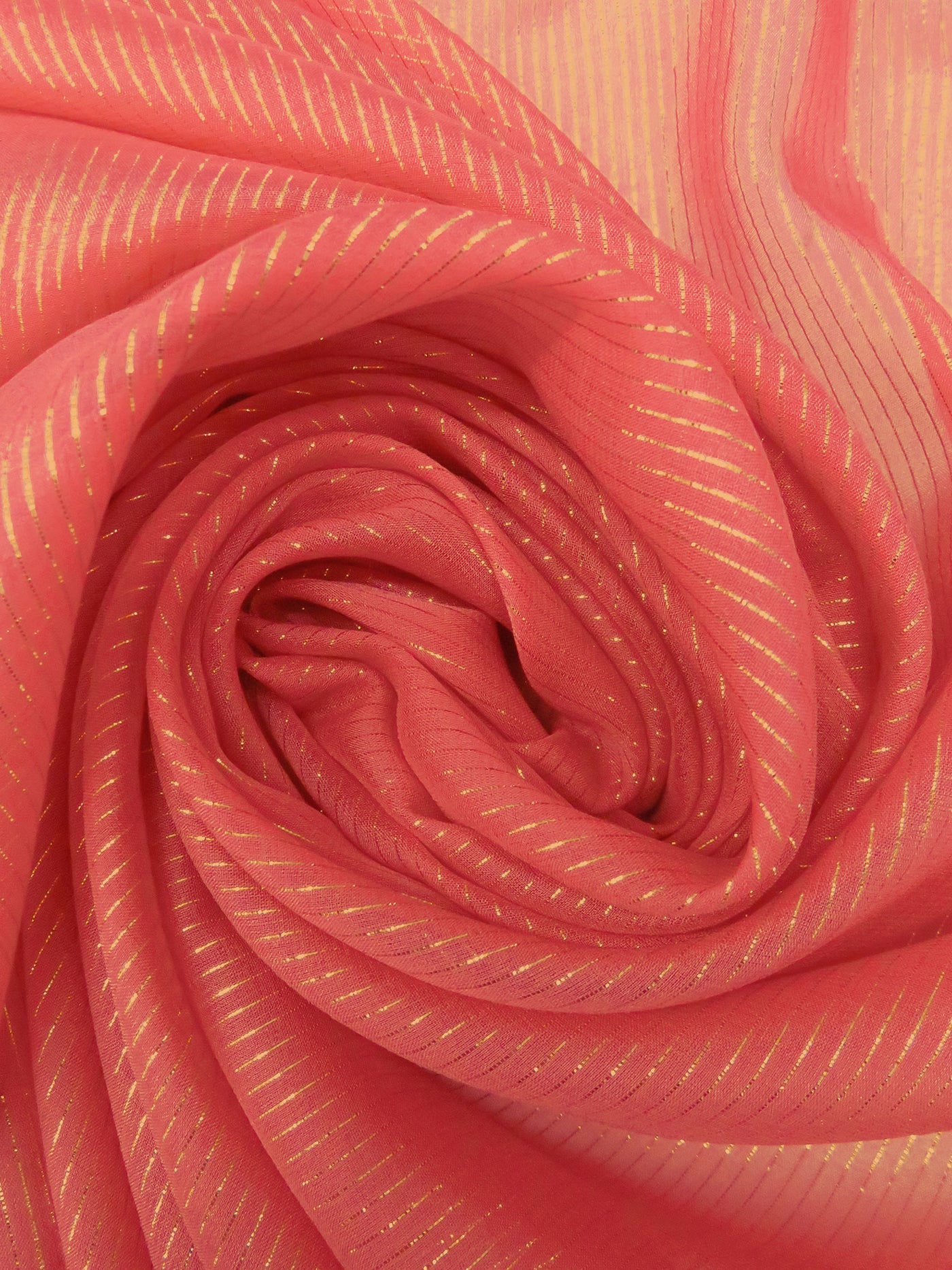 Salmon/Gold Silk/Metallic Vertical Stripe Weave Chiffon - NY Designer - 42W