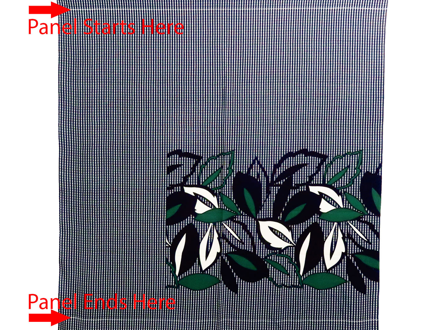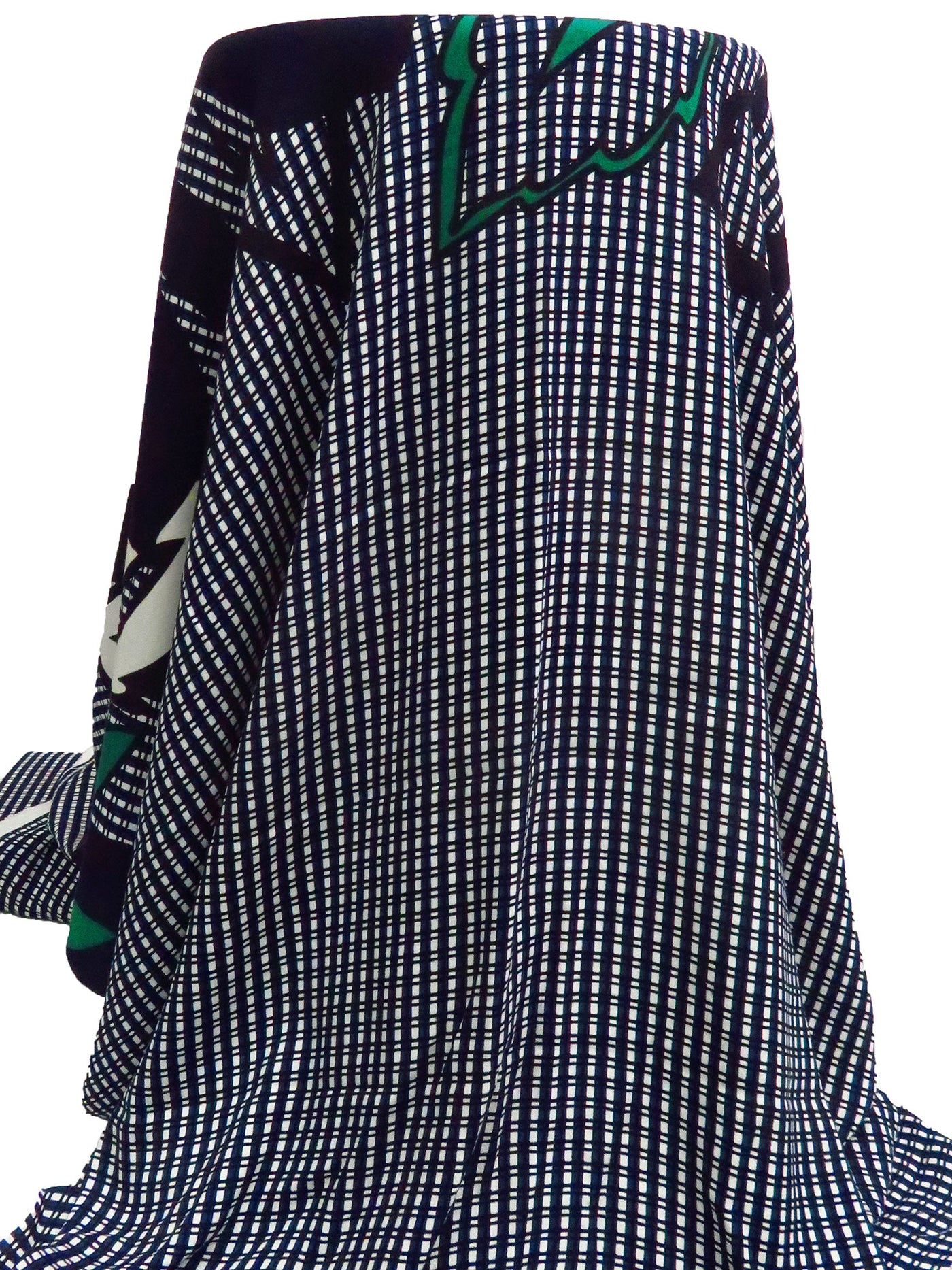SOLD BY THE PANEL ONLY - Black/White/Dark Blue/Multi 100% Rayon Large Leaves On Grid Print Crepe Challis - NY Designer - 51W