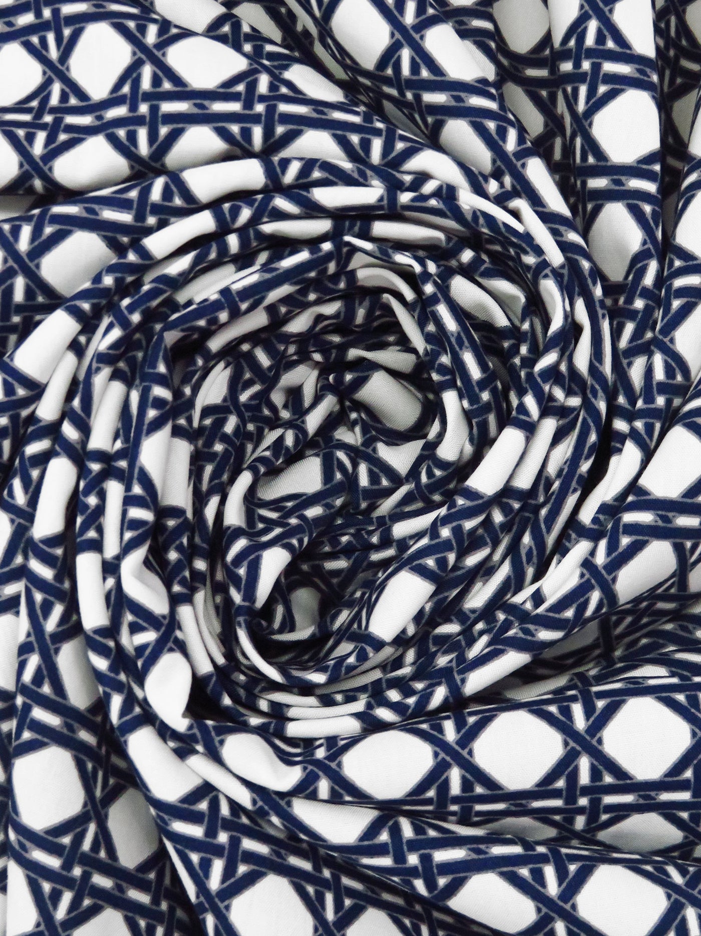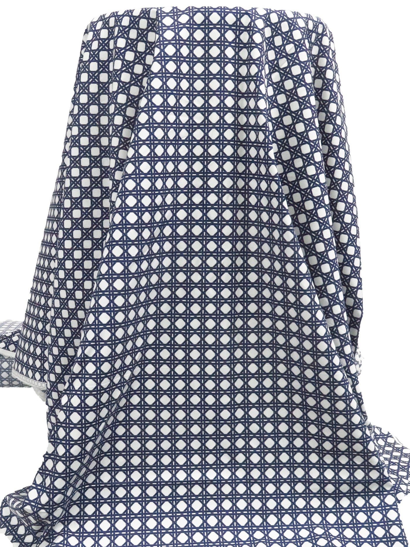 White/Midnight Navy/Dim Gray Cotton/Rayon Geometric Latticework Print Lawn - NY Designer - 56W