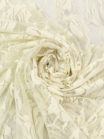 Cream Nylon/Lycra Floral Design Stretch Lace Netting - NY Designer - 56W