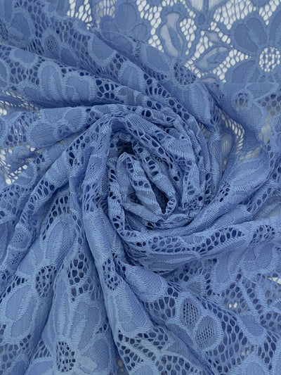 Cornflower Blue Nylon/Lycra Re-Embroidered Floral Stretch Lace - NY Designer - 56W
